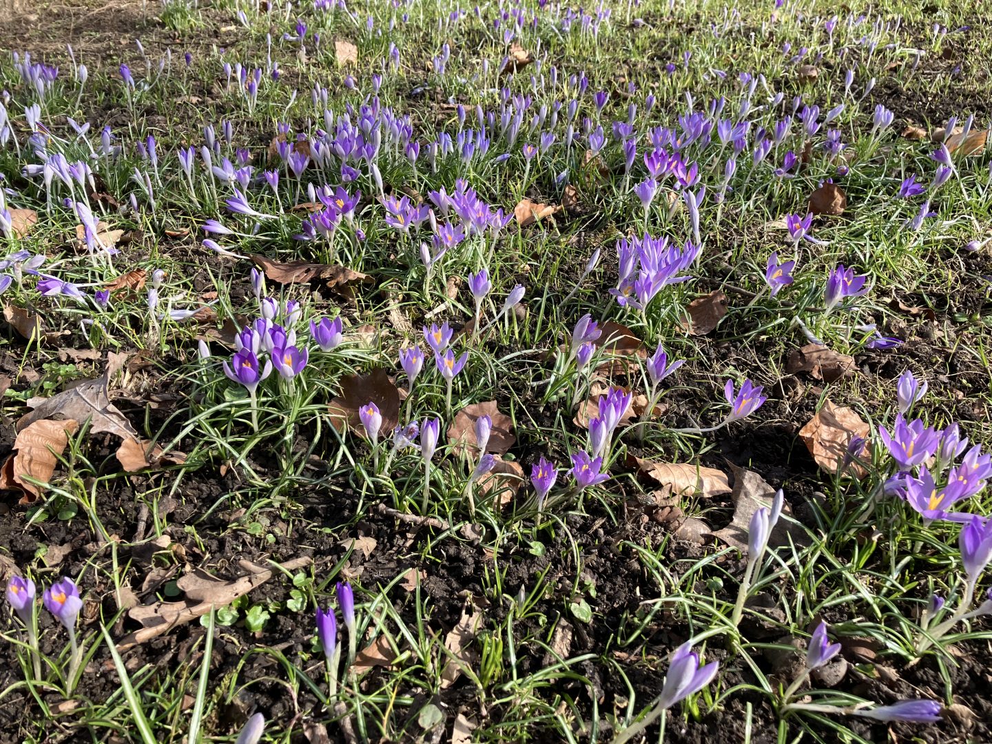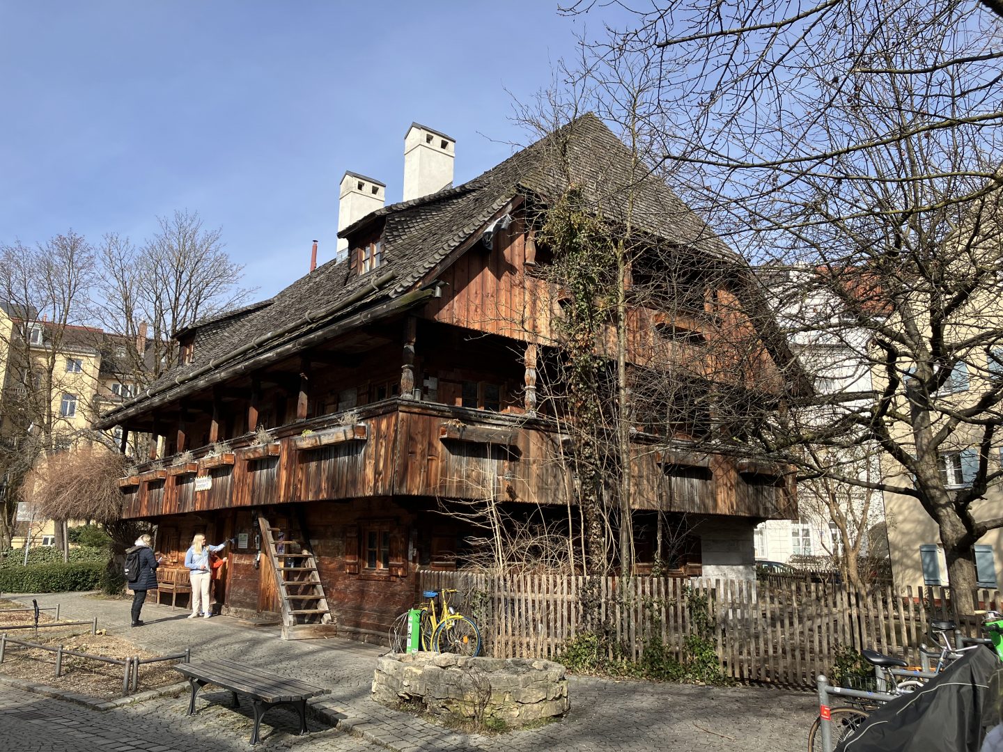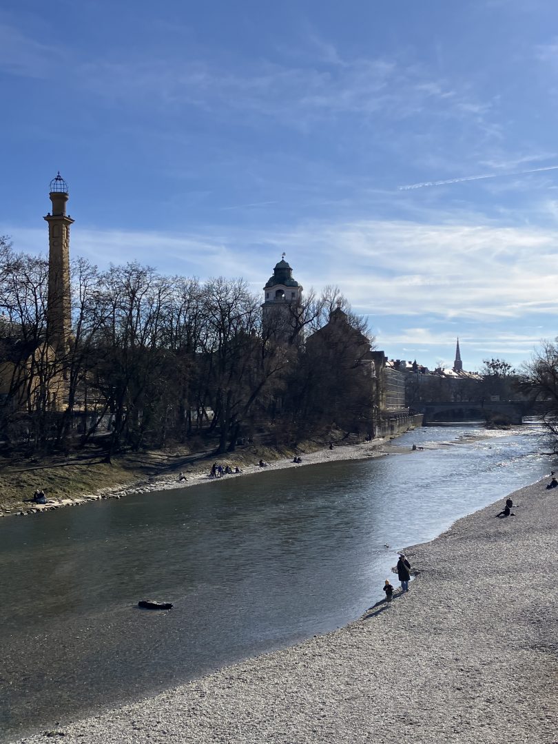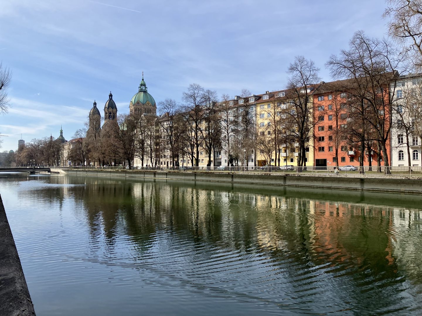 Plan B war schnell erstellt. Da es ja mit „Wandern“ zu tun hatte, ging es ab Ostbahnhof durch Haidhausen, dem südlichen Teil des Englischen Gartens und entlang der Isar zum Alpinmuseum. Begeistert wurden deutliche Frühjahrsboten wie Märzenbecher und Krokusse begrüßt. Sabine bereicherte die kleine Wanderung um einen Abstecher durch die Preysingstraße mit ihren historischen Stätten und Häusern, als Highlight der Kriechbaumhof, heute im Besitz des DAV.