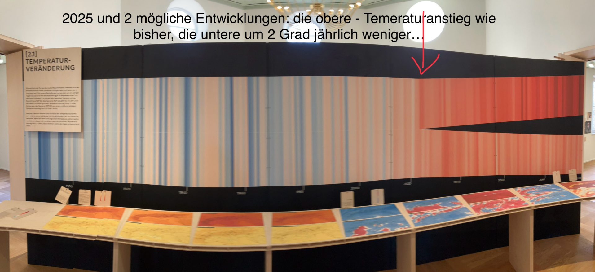 Unter dem Motto „Zukunft der Alpen – die Klimaerwärmung“ ging es gut geführt und erklärt durch die Sonderausstellung. Sehr anschaulich wurden die Folgen des Klimawandels dargestellt, Verluste und Chancen in den Bergen/ Touristenzentren aufgezeigt und die Möglichkeiten eines jeden Einzelnen ein kleines bisschen bewusster durch die Berge zu gehen.