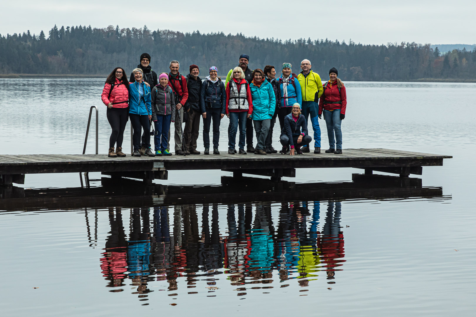 So richtig wollte die Sonne heute nicht durch die Wolken brechen. Für das Gruppenfoto überlegten zwei erfahrene Wanderführer, wo es am hellsten sei und wo Süden ist. Beide lagen einmal falsch 😊.