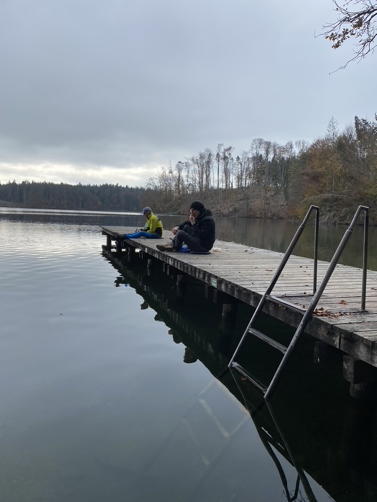 Eigentlich wollten wir noch den größten See, den Langbürgner See, umrunden. Aber der Uferweg war nicht durchgängig begehbar, daher haben wir den Thaler See umrundet und haben uns an DER Badestelle am Langbürgner See zur Mittagspause niedergelassen. Als wir ankamen, kam tatsächlich eine Frau aus dem echt kalten Wasser. Mutig! Aber sie sah nicht so aus, als ob sie das erste Mal zu dieser Jahreszeit baden war. Jeder suchte sich seinen Lieblingsplatz und genoss seine Brotzeit mit Seeblick.