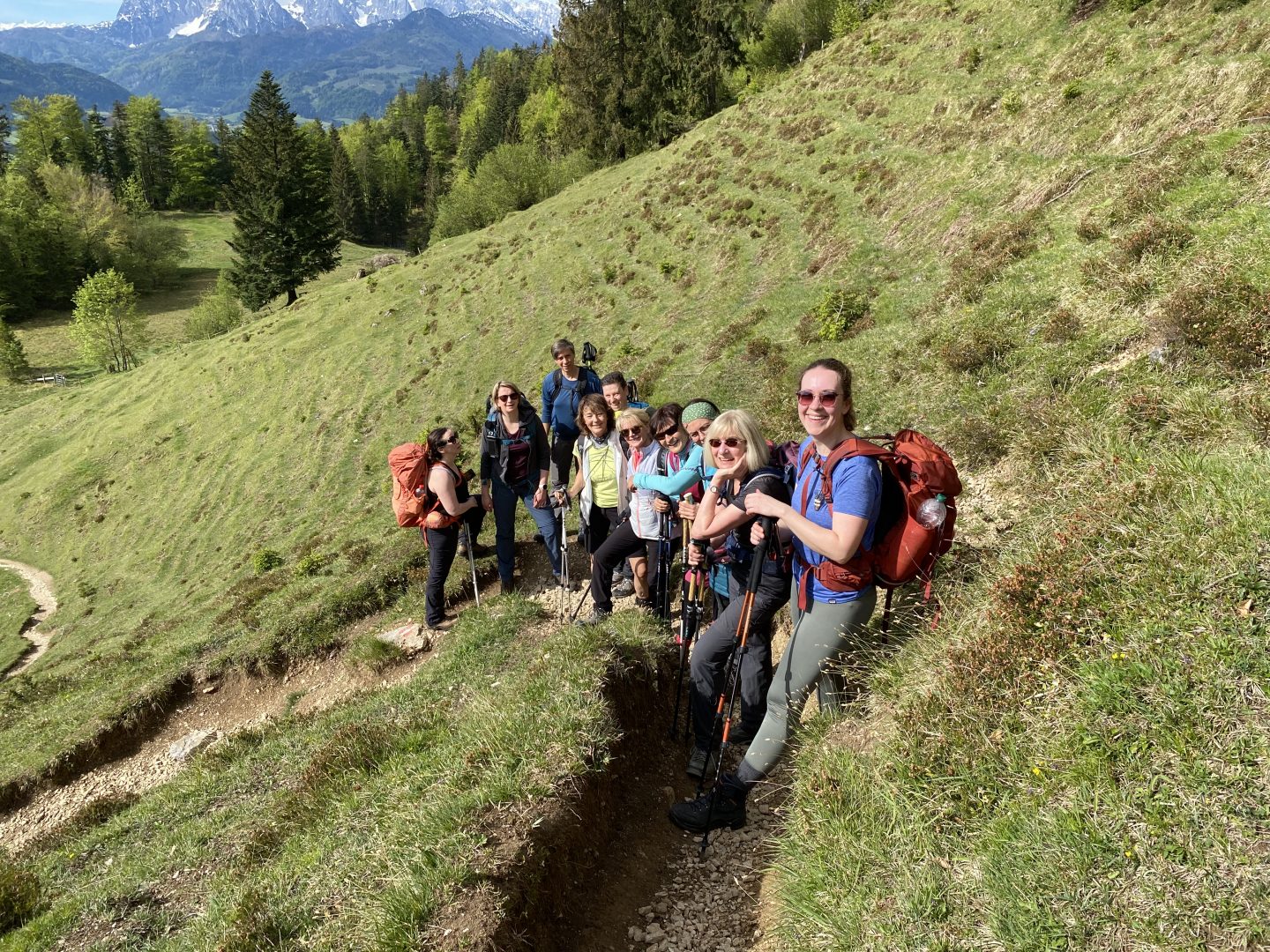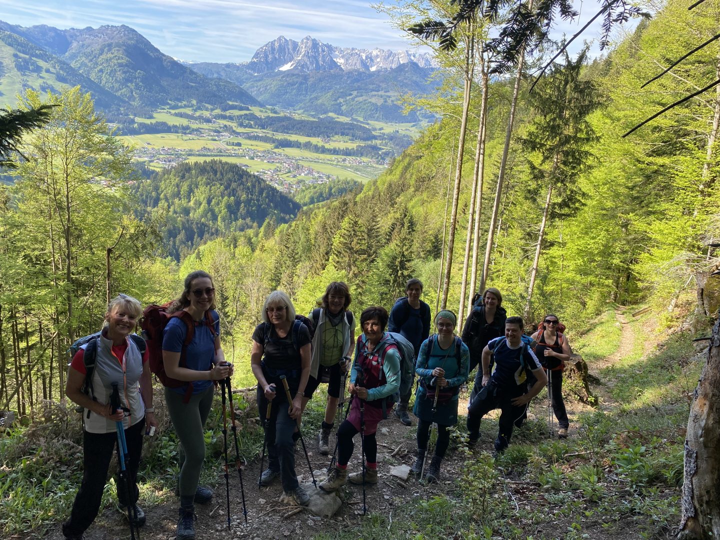5.5.2024, mit Veronika Pfeffer – Nachdem wir die Tour am 27.4. wegen Schneemassen in den Bergen absagen mussten, freuten sich 11 Alpenkranzler, dass das Wetter am Nachholtermin unerwartet gut war. Sogar das Waldschwimmbad in Kössen scheint schon auf zu haben, aber wir hatten Glück und konnten dort problem- und kostenfrei parken.