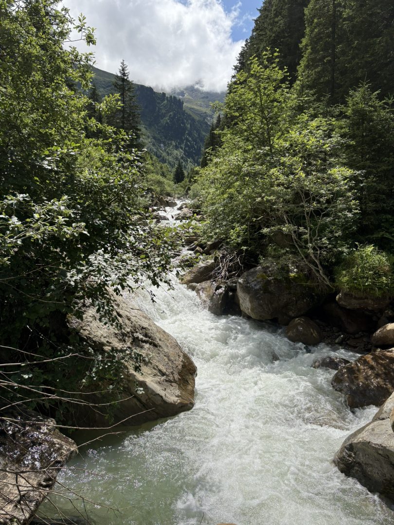Nach vier Tagen bei perfektem Wetter im Hochgebirge tauschte das Wetter über Nacht sein Gesicht völlig. Schlechte Laune – weit gefehlt, so stiegen wir bei Regen steil hinab, bis wir nach Tagen nun wieder die ersten Bäume sahen.