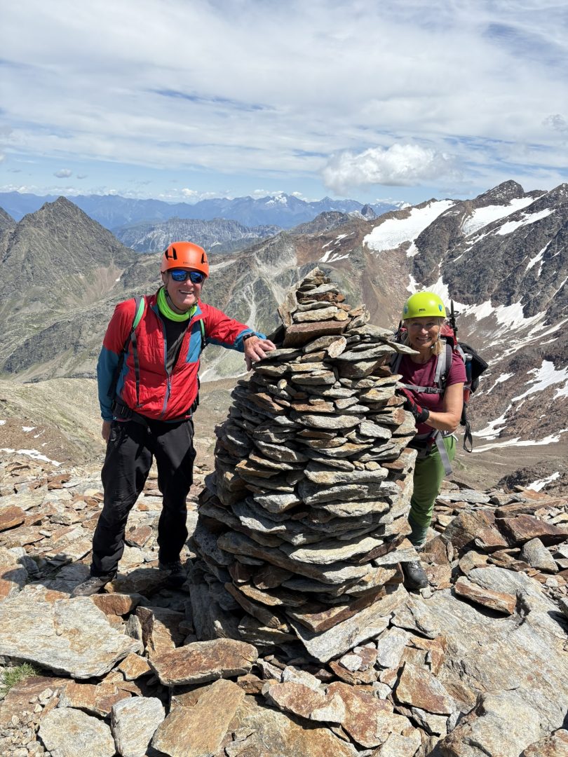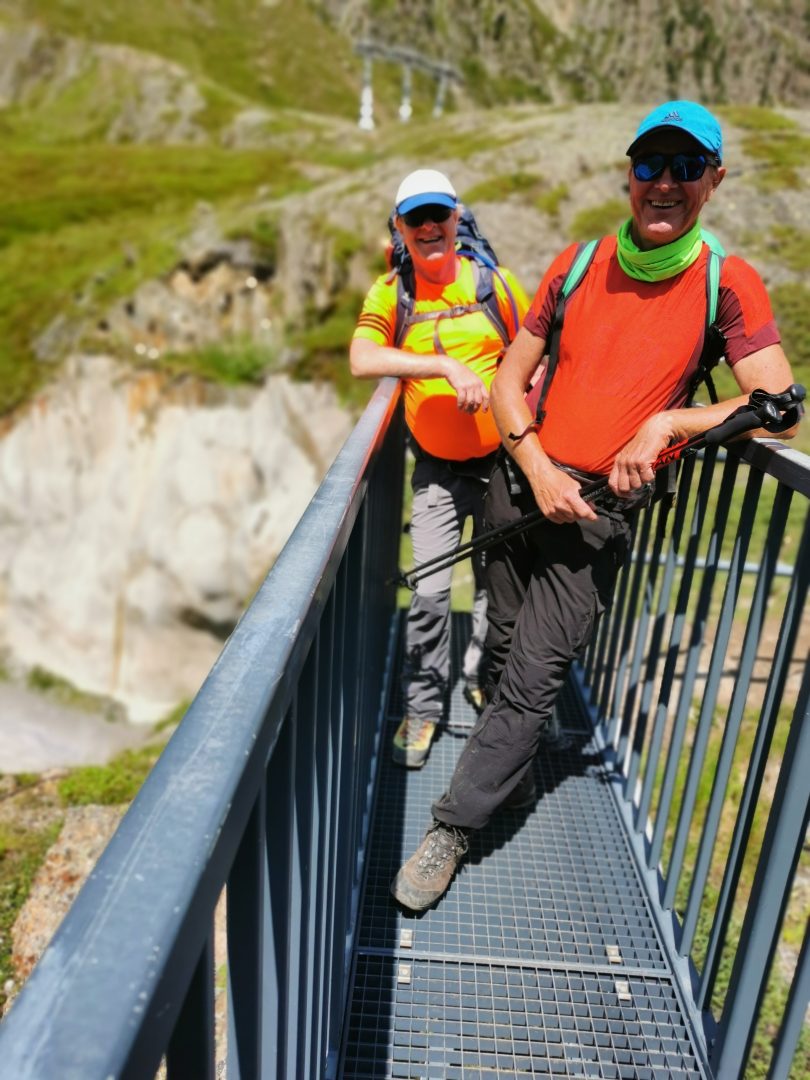 17. – 21.07.2025 Sicherlich keine alltägliche Herausforderung welche einiges an Kondition und gute Trittsicherheit erfordert. Ursprünglich entwickelte sich der Stubaier Höhenweg aus traditionellen Handelswegen und Saumpfaden, welche auf eine viele Jahrhunderte zurückliegende Geschichte zurückblickt. So war es damals einfacher mit weniger Flussüberquerungen und unter weit trockeneren Bedingungen hoch über dem Tal voranzuschreiten. Erst mit dem Liftbau von Fulpmes 1960 und der Errichtung der Stubaier Gletscherbahn 1973 hielt der Tourismus im Stubaital Einzug. So wurden die Wege nach und nach markiert. Als strukturierte Route zu den Hütten lässt sich dieser allerdings nicht datieren. So ist es heute möglich diese Rundstrecke mit etwa 80 km und rund 6000 HM in 8 bis 9 Etappen von Neustift südöstlich des Stubaitals zum Talende an der Dresdner Hütte und nordwestlich des Tals zurück nach Neustift bestreiten, ohne ins Tal hinabzusteigen.