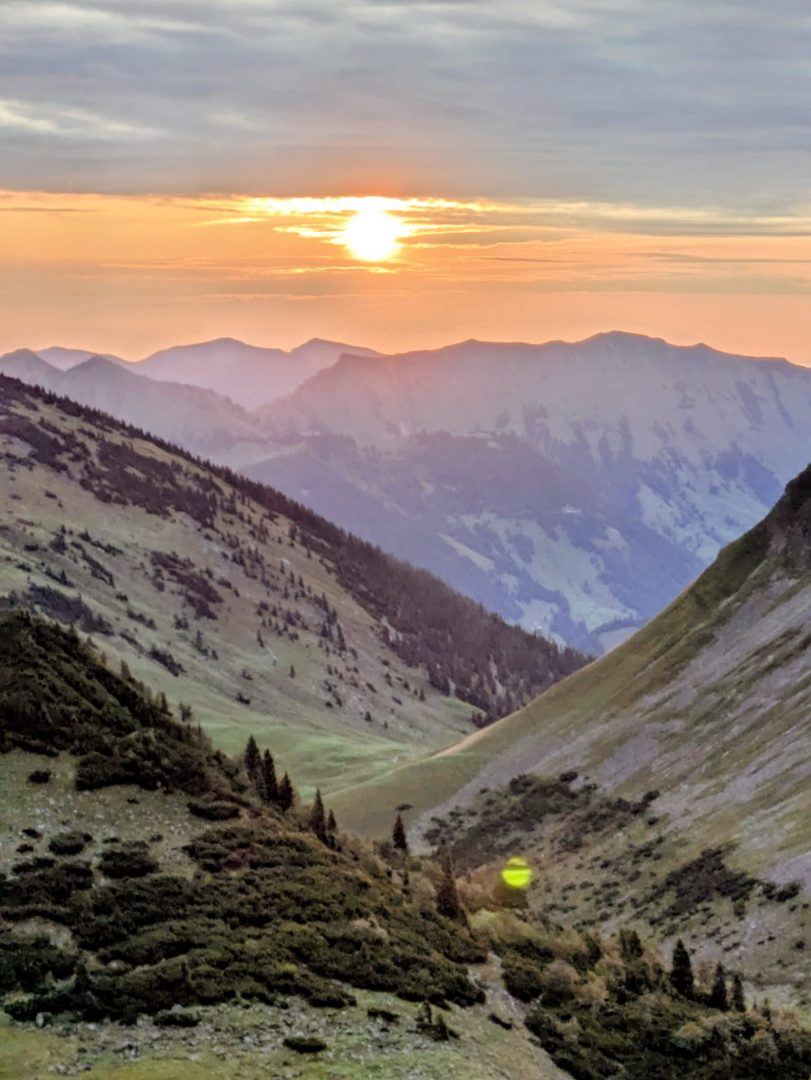 Der heutige Tag startet mit einem tollen Sonnenaufgang. Nach einer sehr ruhigen Nacht im schönen 6er Zimmer, stärkten wir uns mit einem Bergfrühstück, Müsli oder einem veganen „Batz“.