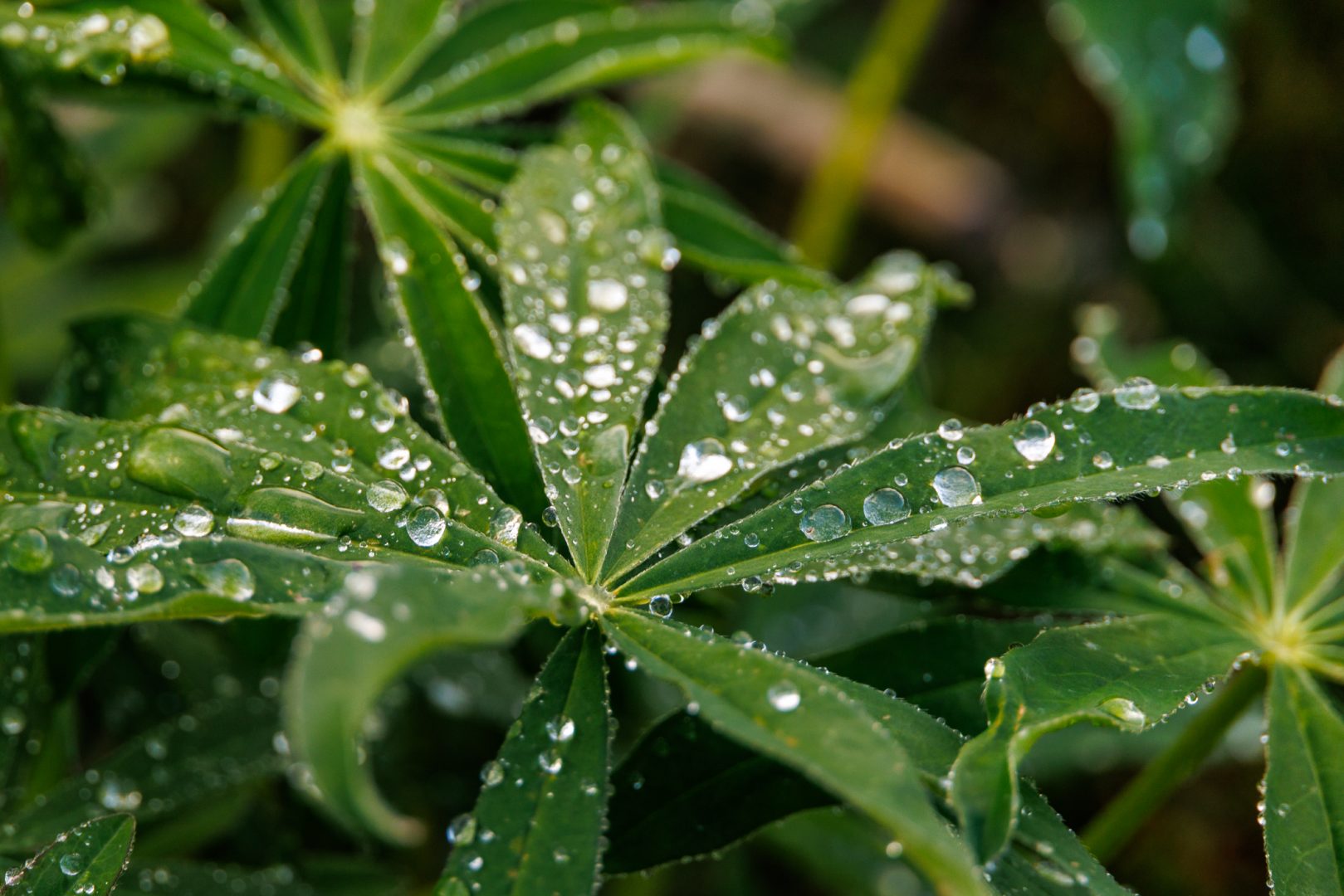 Die Wolken verziehen sich und geben den Blick frei auf die mächtigen Berge und auch die vielen kleinen, auch so wunderschönen Dinge frei, wie Wassertropfen, die wie Diamanten auf Lupinenblättern in den Sonnenstrahlen glänzen.