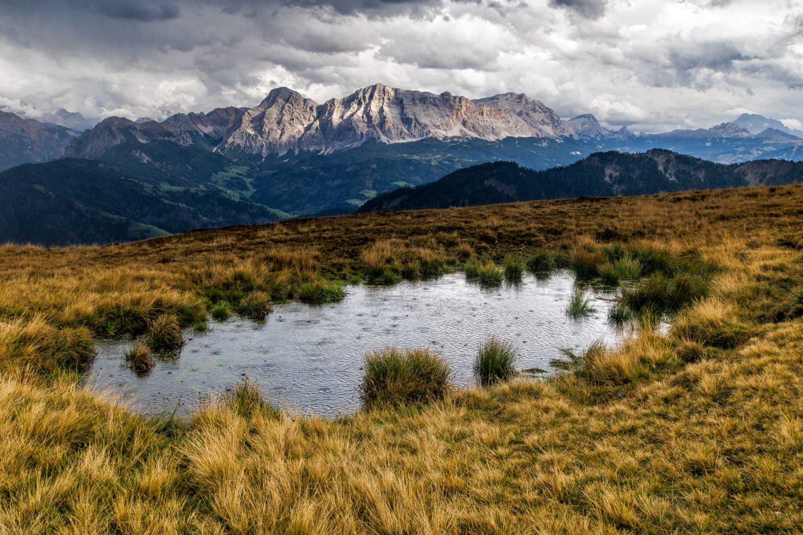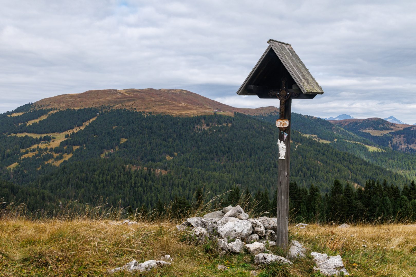 Nicht schlimm, aber wir sind froh, noch einigermaßen trocken an der Kreuzwiesenalm angekommen zu sein. Der Peitlerkofel zeigt sich noch und wir freuen uns schon auf den nächsten Wandertag.