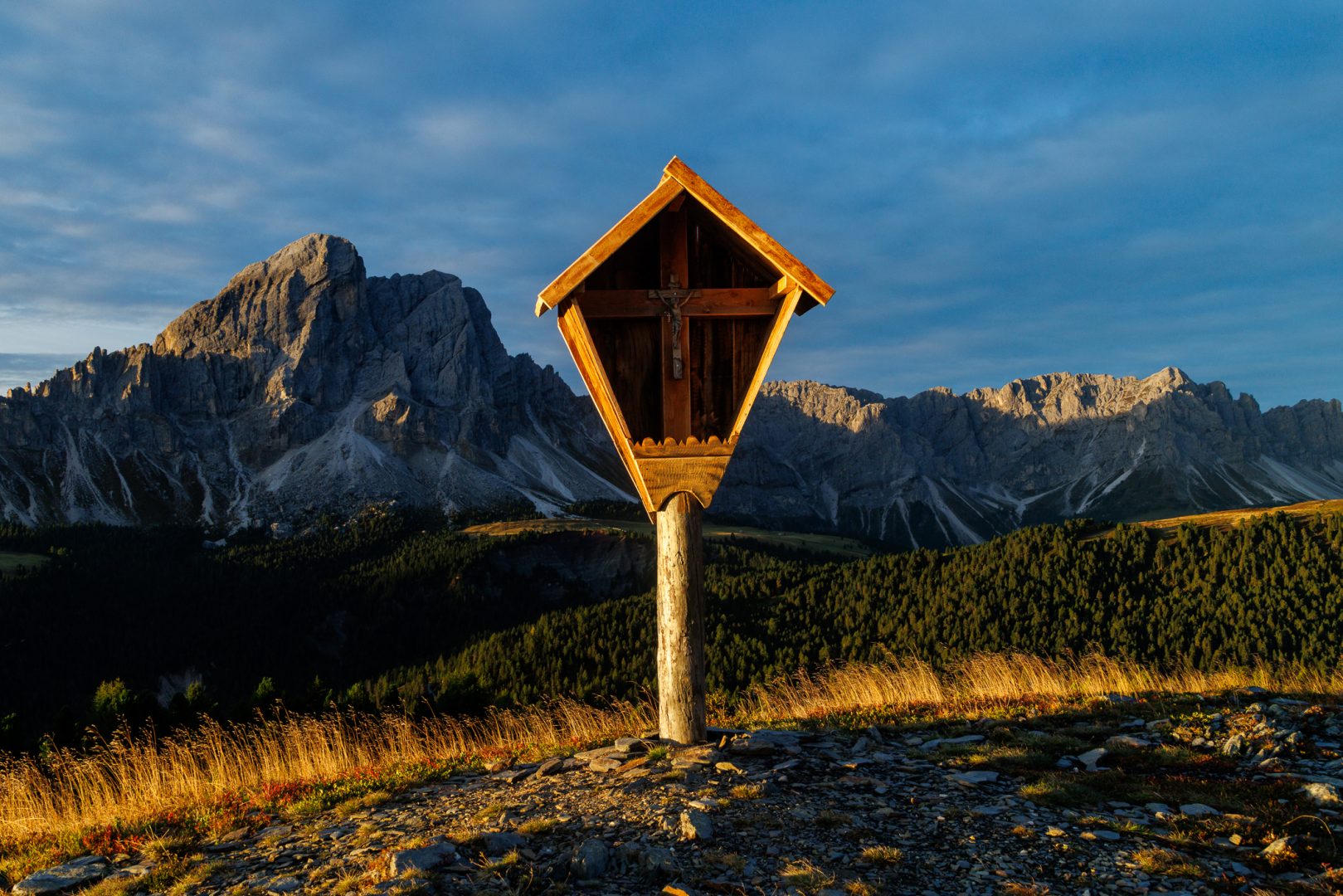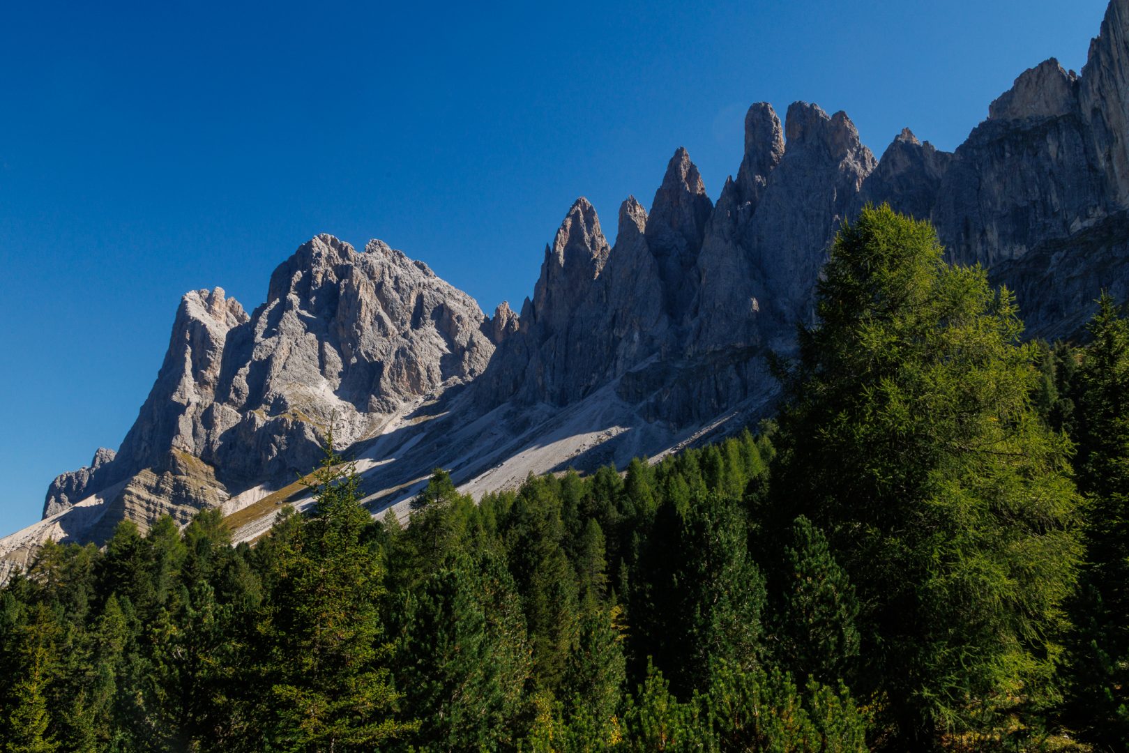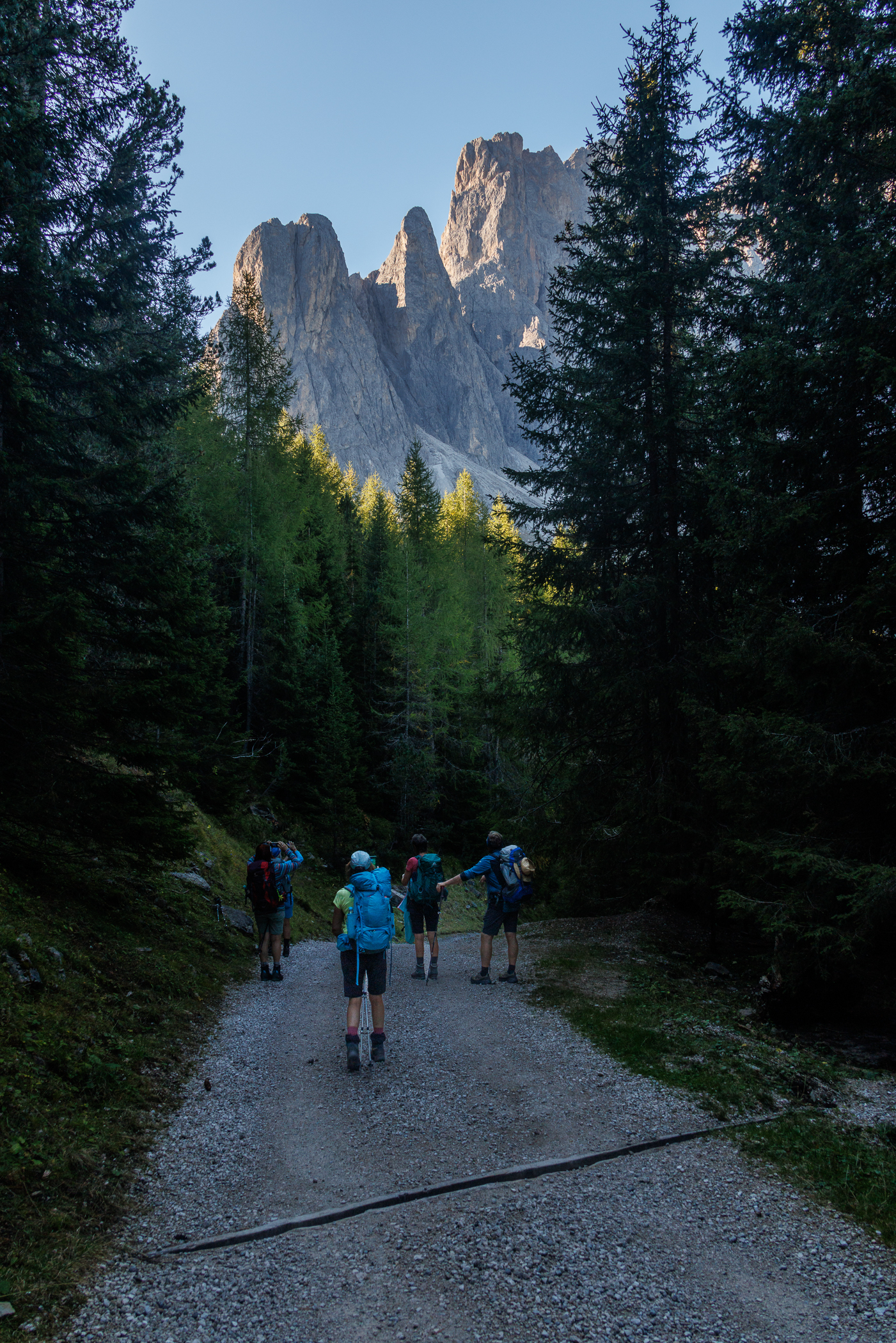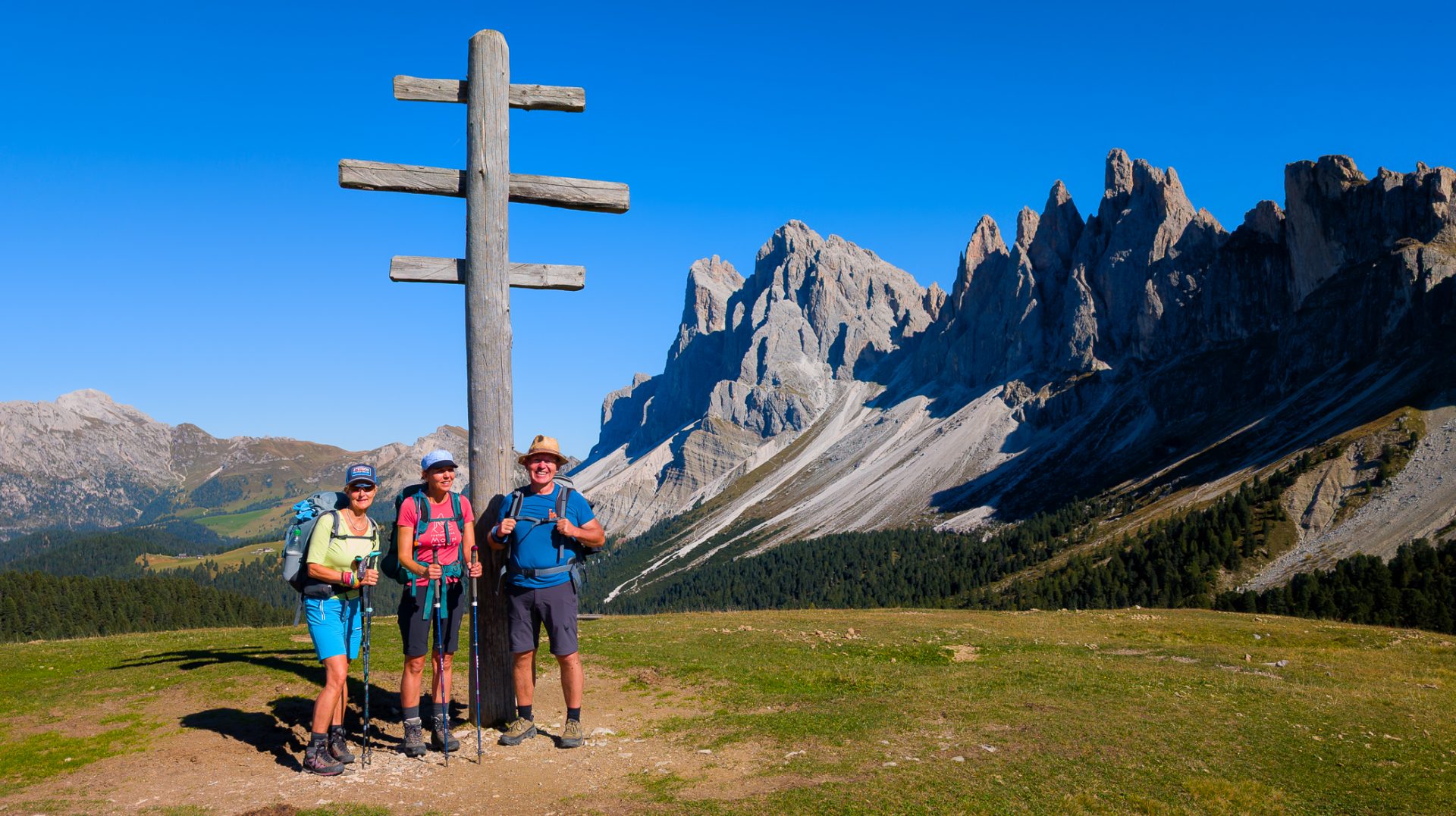 Bei unserer Wanderung kommen wir an der Geisler-Gruppe vorbei, die uns dann auf den Adolf-Munkel-Weg führt.