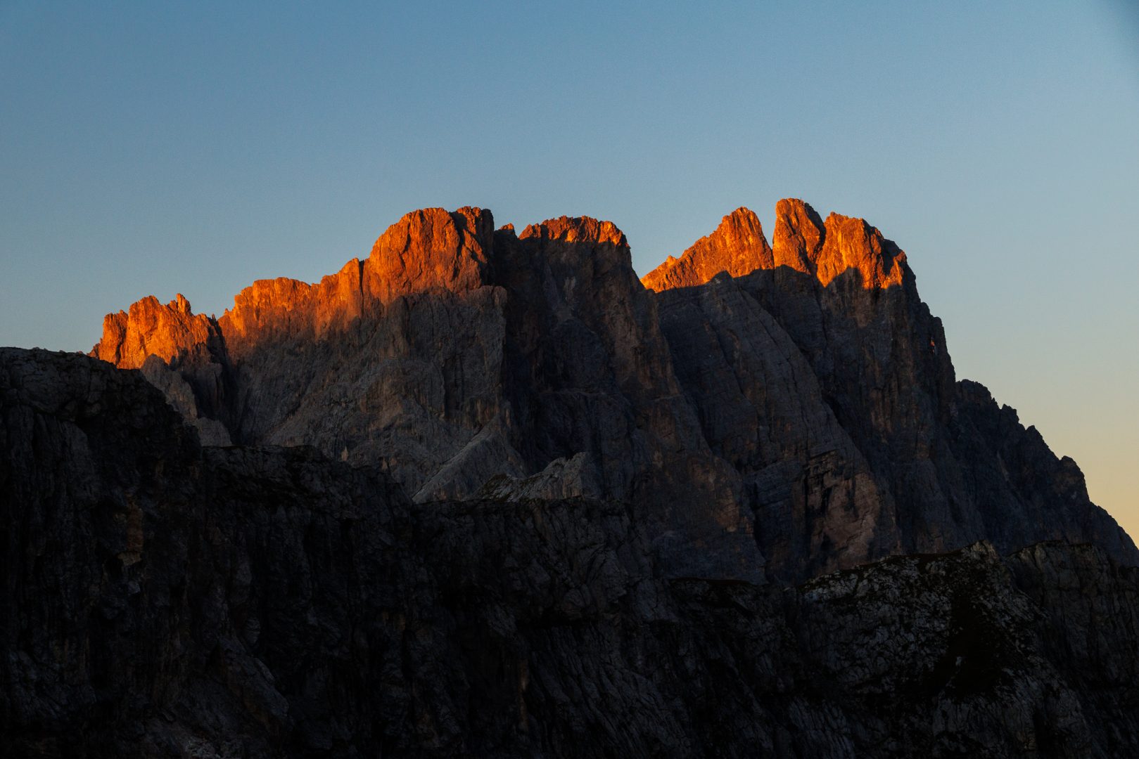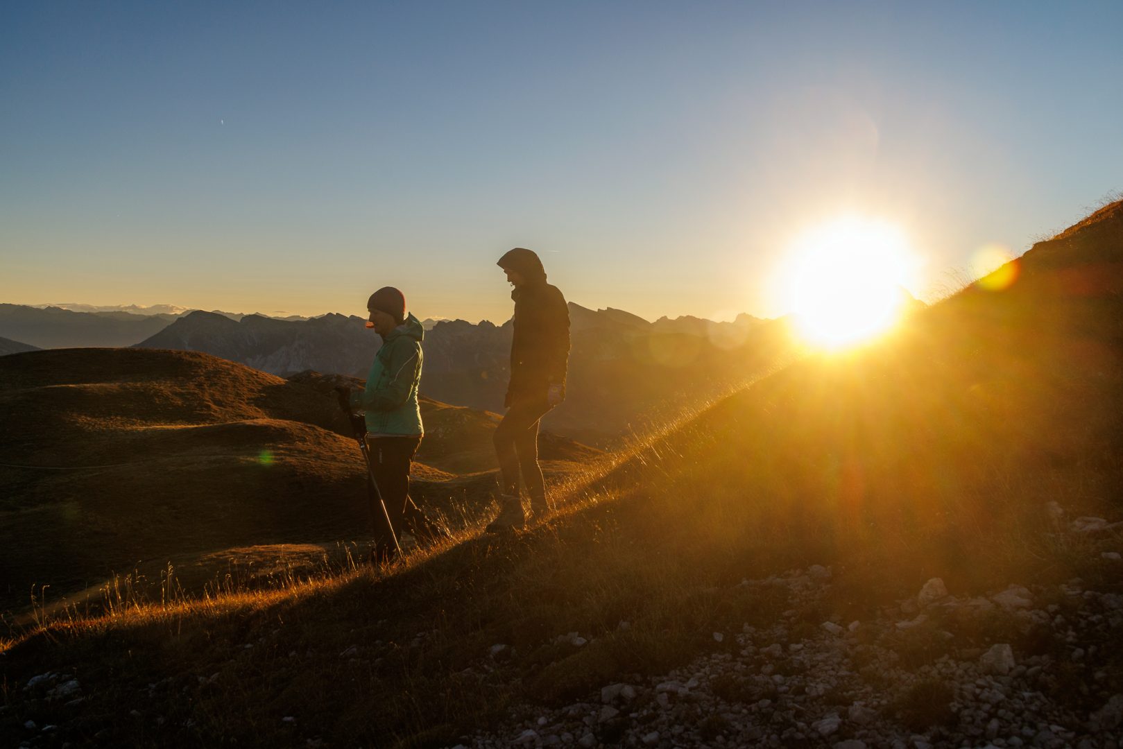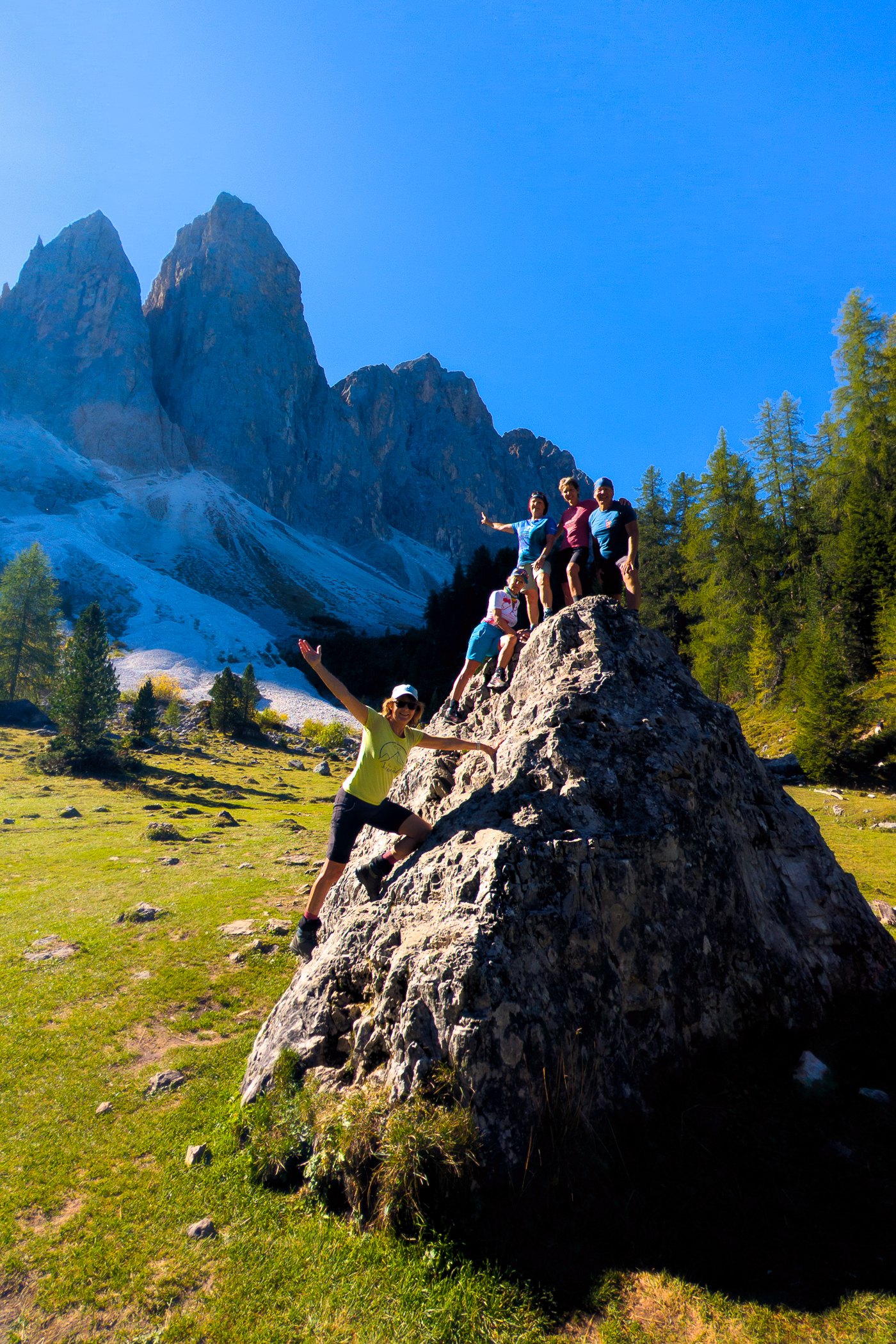 Heute ist unser vierter Tag der Dolorama-Wanderung. Wir werden mit strahlendem Sonnenschein geweckt. Manche sogar noch früher und steigen auf einen kleinen, weglosen Gipfel zum Sonnenaufgang.