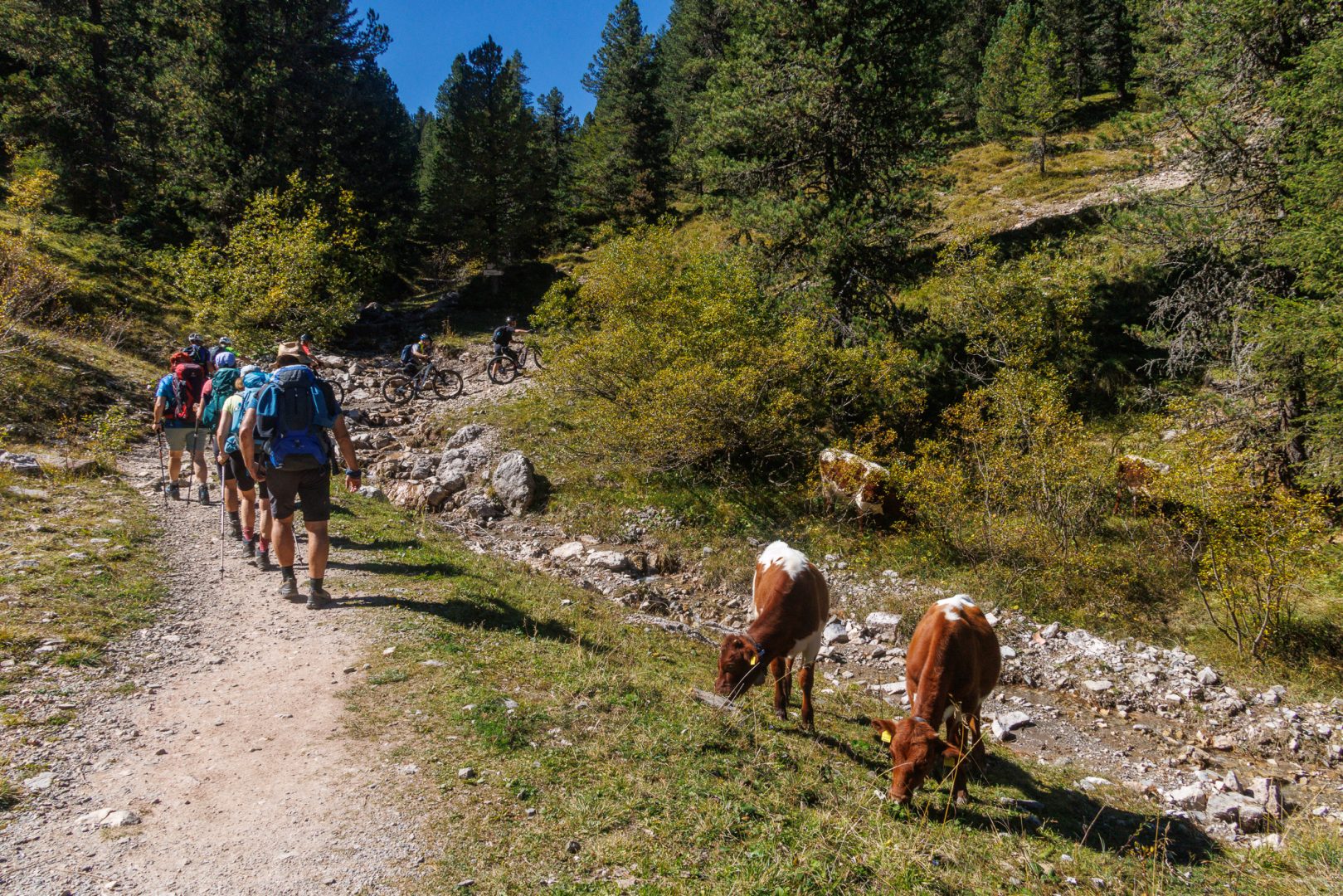 Und wie es oft so ist, ergibt sich ein kleiner Umweg, der wunderschön ist, zur Gschnagenhardt Alm, wo wir alle einen wunderbaren Cappuccino genießen.