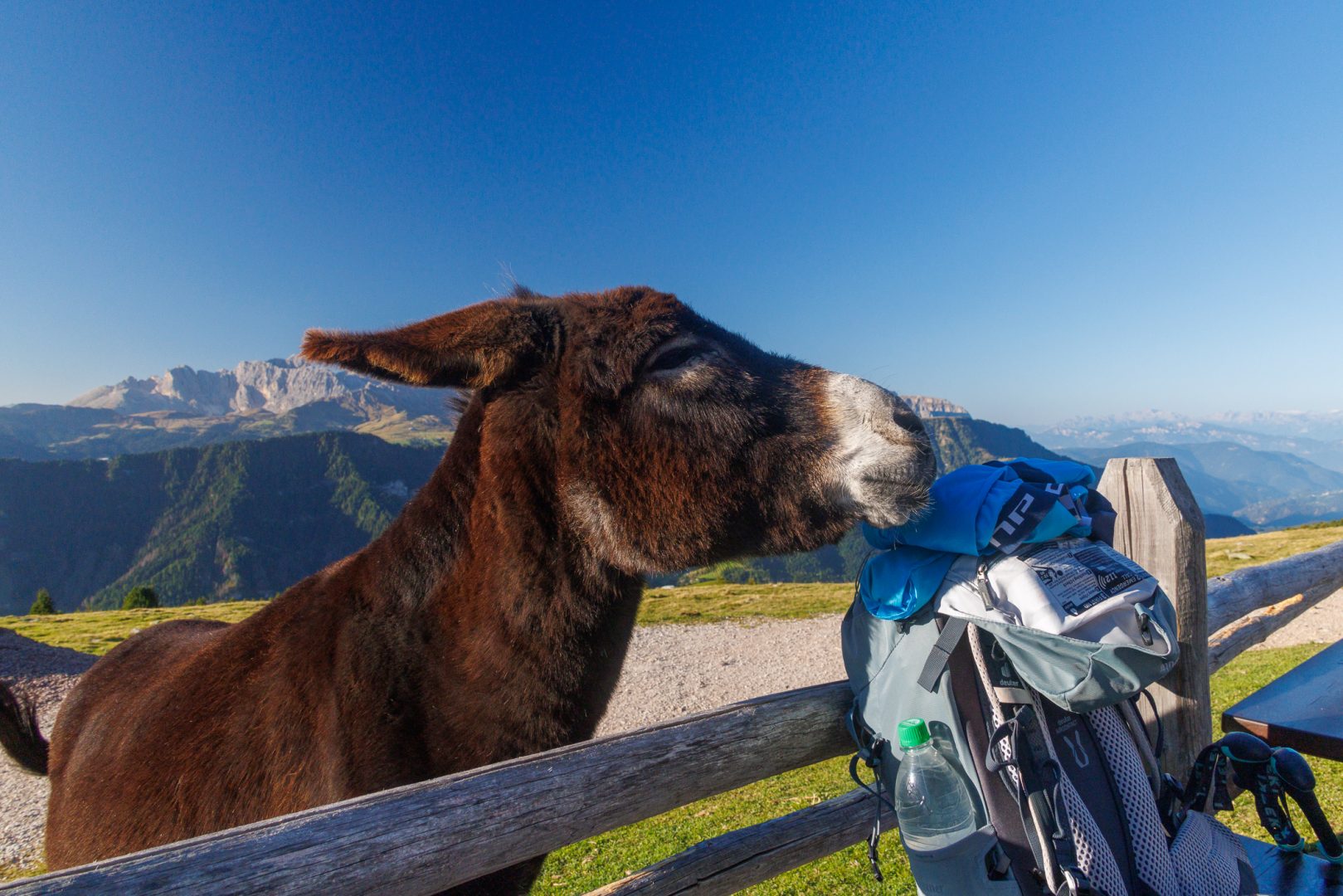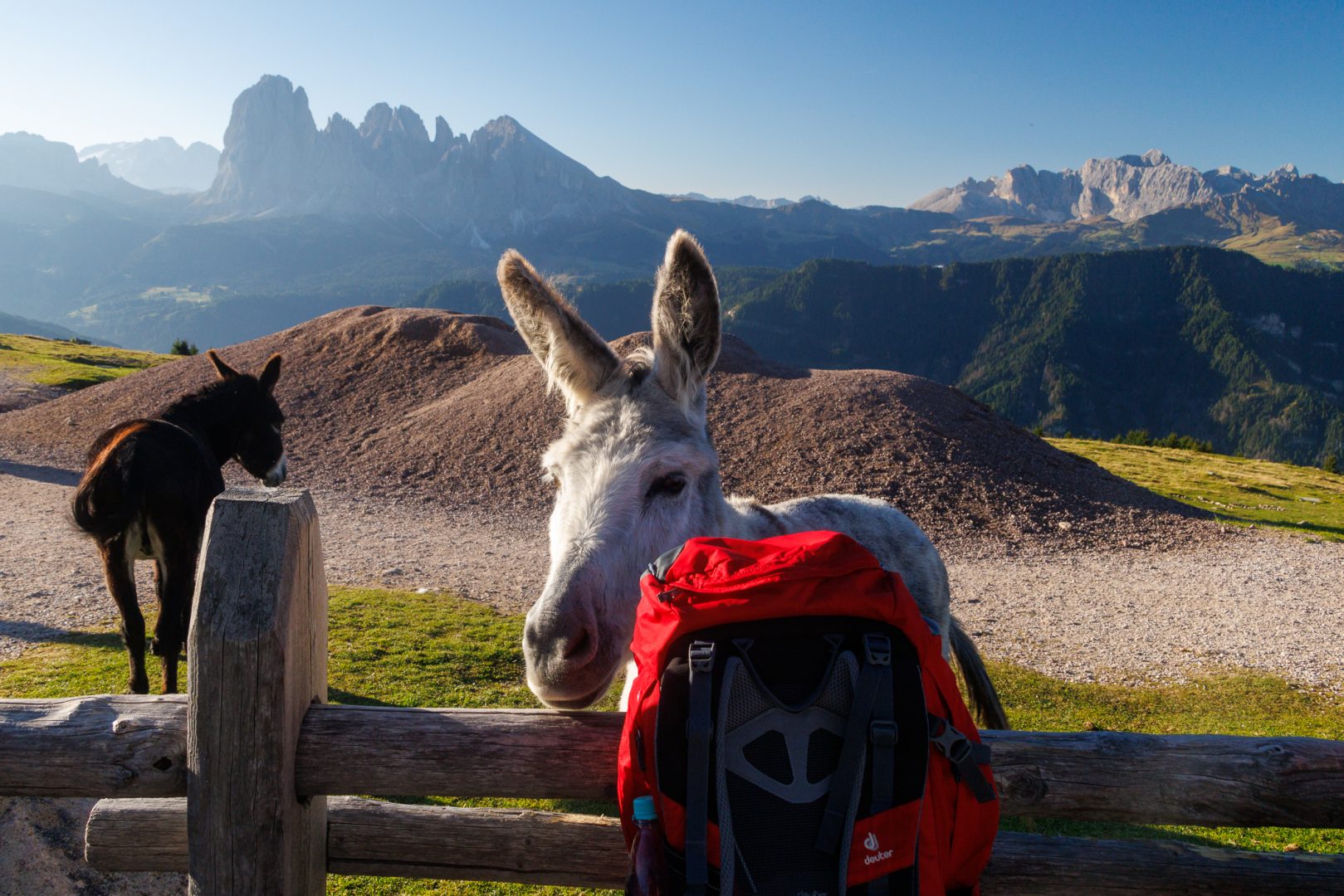 Auch die Esel an der Hütte begrüßen uns freundlich und haben unsere Rucksäcke zum Fressen gern.