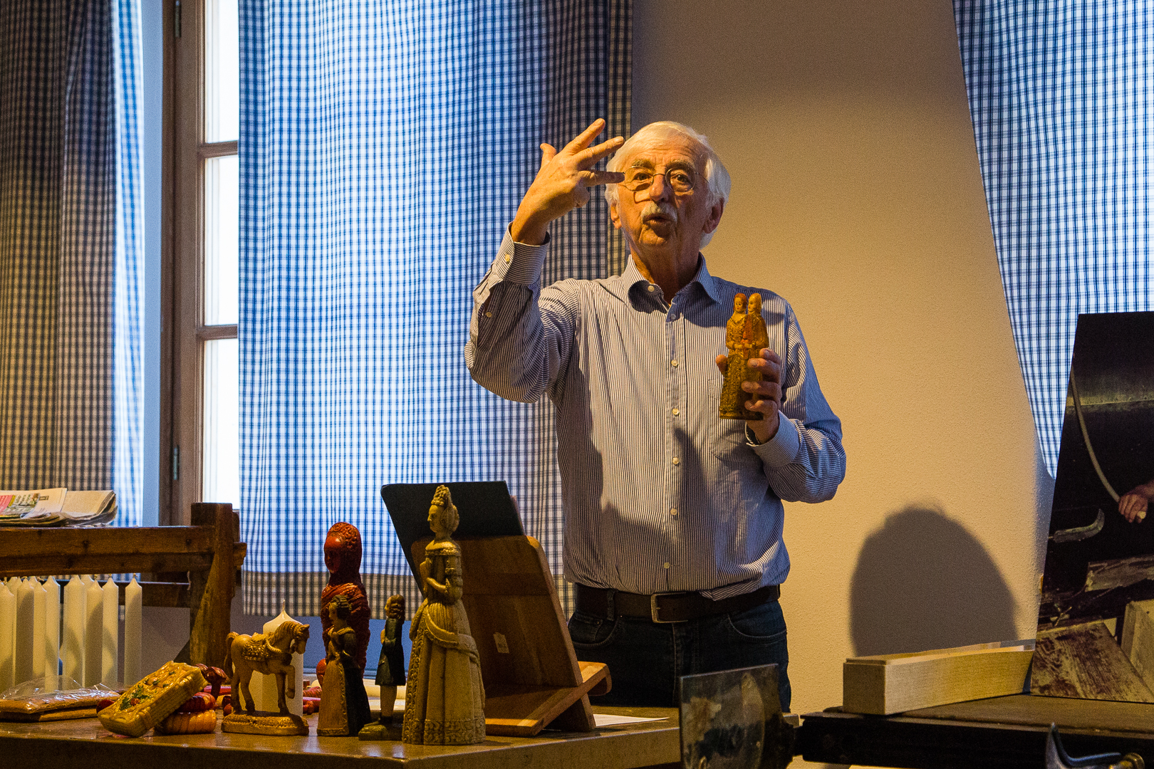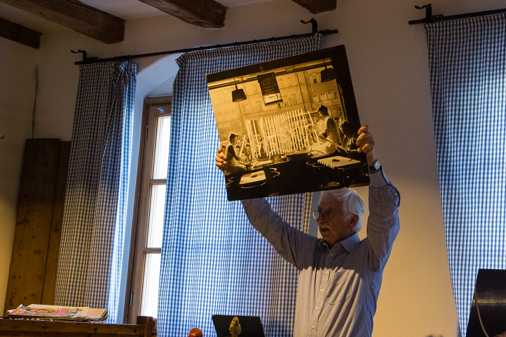 Gestärkt geht es zum Endspurt Richtung Auto und zu unserem heutigen weiteren Highlight. Mit dem Auto fahren wir runter auf den Volksfestplatz von Pfaffenhofen und laufen ca. 10 Minuten in die Stadt rein zum Haus Hipp. Jeder kennt die Hipp Babykost, aber wer kannte die über 400 Jahre alte Tradition dieser Familie?  Seit über 400 Jahren steht das Haus Hipp am Marktplatz in Pfaffenhofen. Schon im Mittelalter gehörten sie zur Zunft der Lebzelter. Lebzelter waren die einzigen, die Produkte der Biene, also Wachs und Honig gewerblich verarbeiten durften. Sie hatten also Monopol auf die Lichtquelle des Mittelalters- die Kerzen, die Süßigkeit in dieser Zeit- den Honig und lagerfähigen Alkohol- den Met. Klaus Hipp, ein Enkel des Erfinders der Babykost Joseph Hipp, erzählte uns in einem kurzweiligen und unterhaltsamen Vortrag von seiner Leidenschaft und sein Lebenswerk dem Kerzenziehen & Wachsvotivbilder sowie natürlich einiges über seine Familiengeschichte.