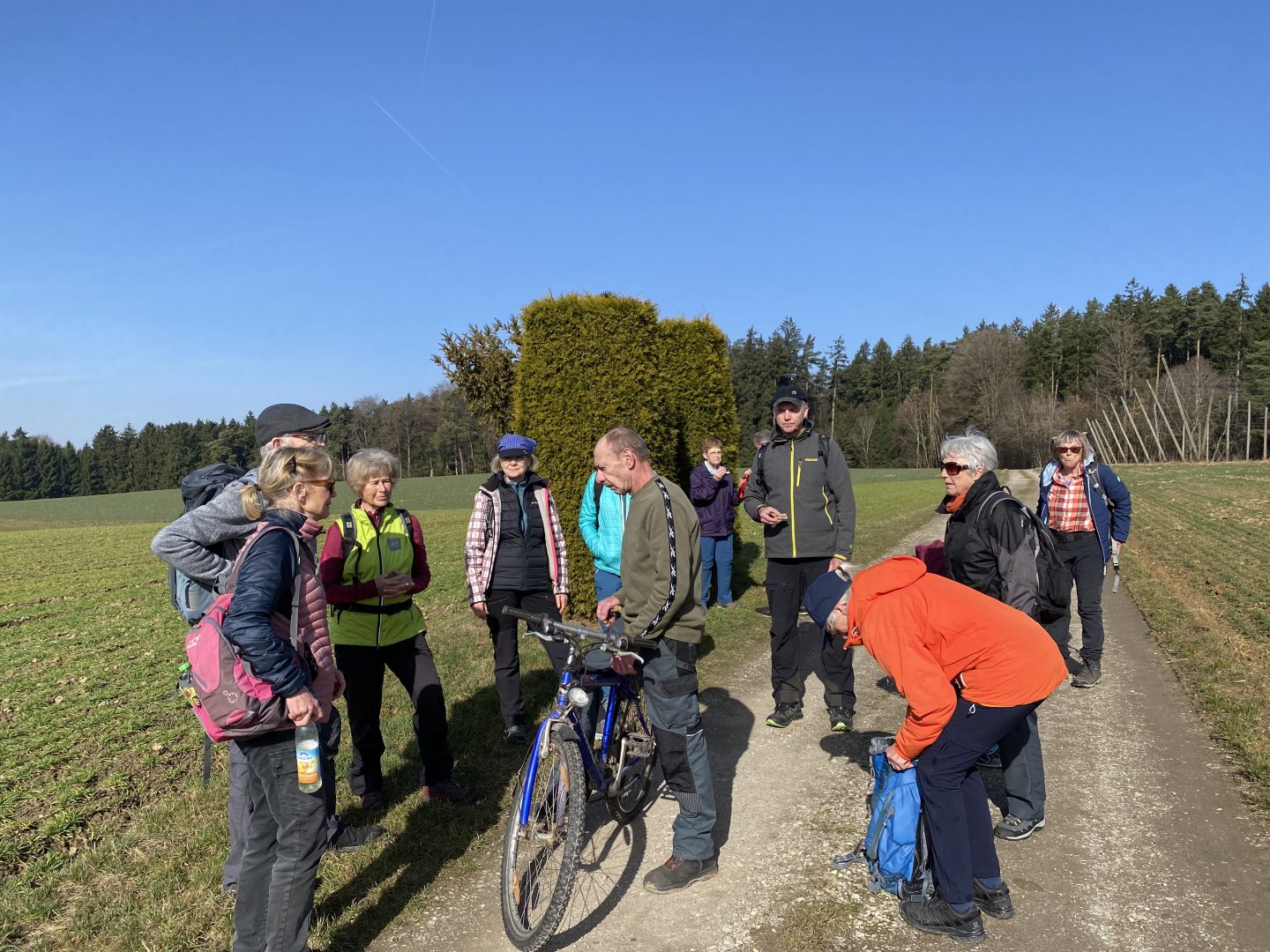 Kreuz und quer geht es im Wald weiter, bis wir auf´s freie Feld kommen. Sofort verlangsamt sich das Tempo, da jeder die Sonnenwärme aufsog.