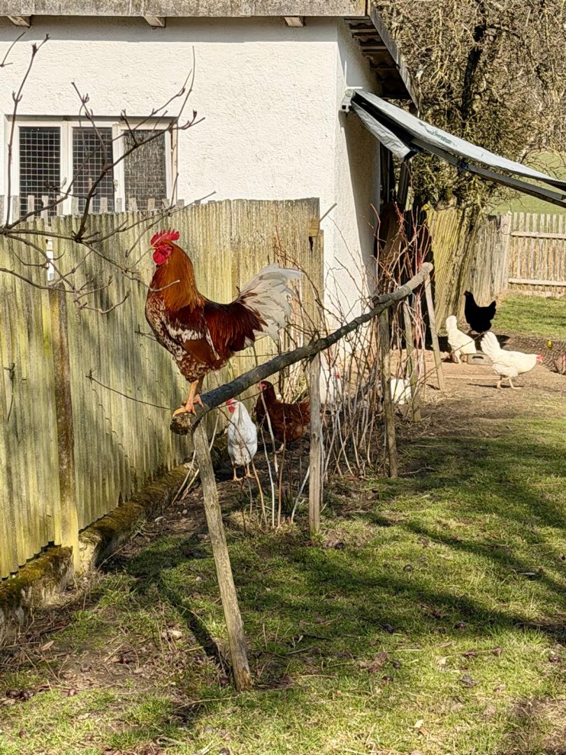 Auch der Hahn machte uns deutlich, wer hier der Herr im Hause ist.
