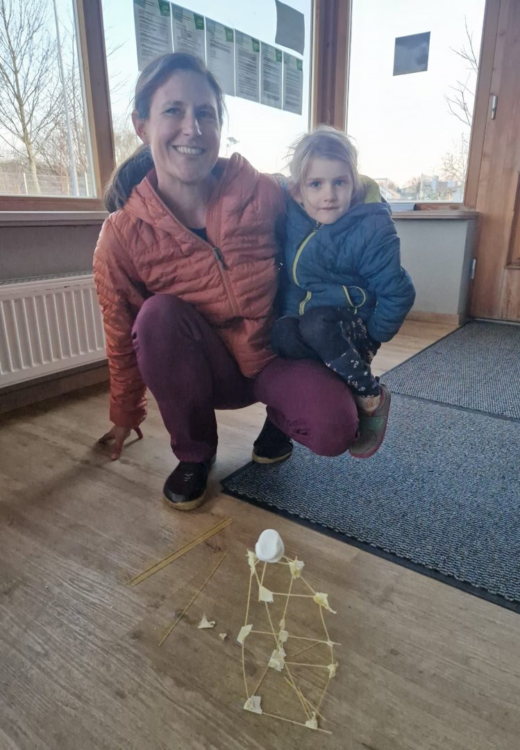 Nach dem offiziellen Teil wurde es kreativ und ein bisschen knifflig: Bei der anschließenden Challenge hieß es, mit 20 Spaghetti, 1 Meter Klebeband und einem Marshmallow den höchsten Turm zu bauen. Das schwierigste daran: Der Turm durfte nicht am Boden festgeklebt und der Marshmallow (noch) nicht gegessen werden 😉