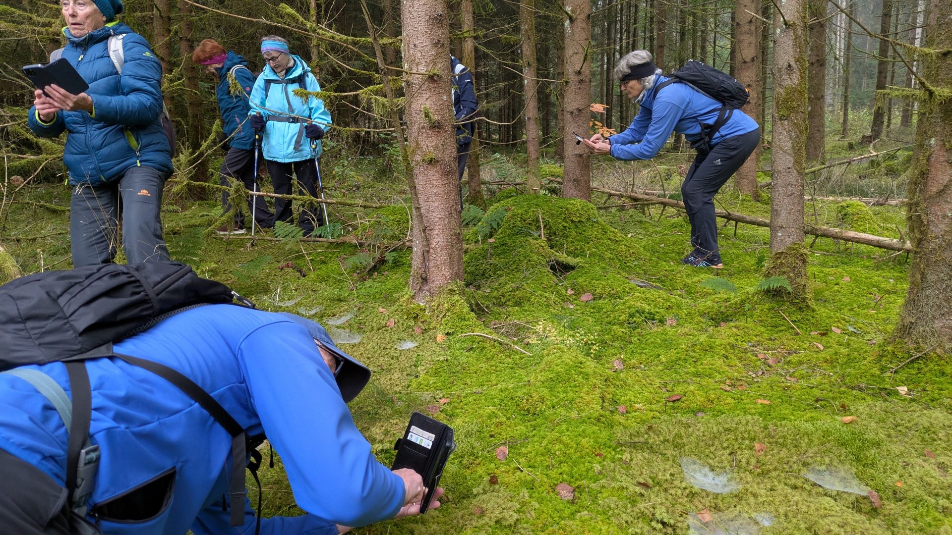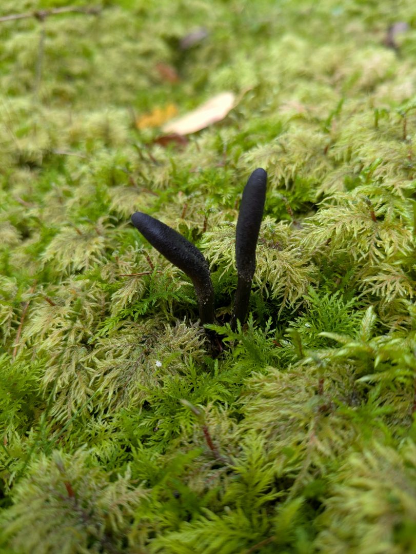 Vom Wanderparkplatz an der Straße von Hohenlinden nach Ebersberg führt ein schmaler Weg in den Ebersberger Forst hinein Richtung Waldgaststätte Sauschütt. Hier befindet sich ein Mischwald mit altem Baumbestand inklusive Totholz, in dem wir gute Chancen haben sollten, ungewöhnliche Pilzarten zu finden. Ziel der Tour war es ja gerade nicht, einen Korb voller Schwammerl zum Essen zu sammeln, sondern Pilze mit verschiedensten Formen und Farben zu entdecken, sie einmal in aller Ruhe genauer anzusehen und zu fotografieren.