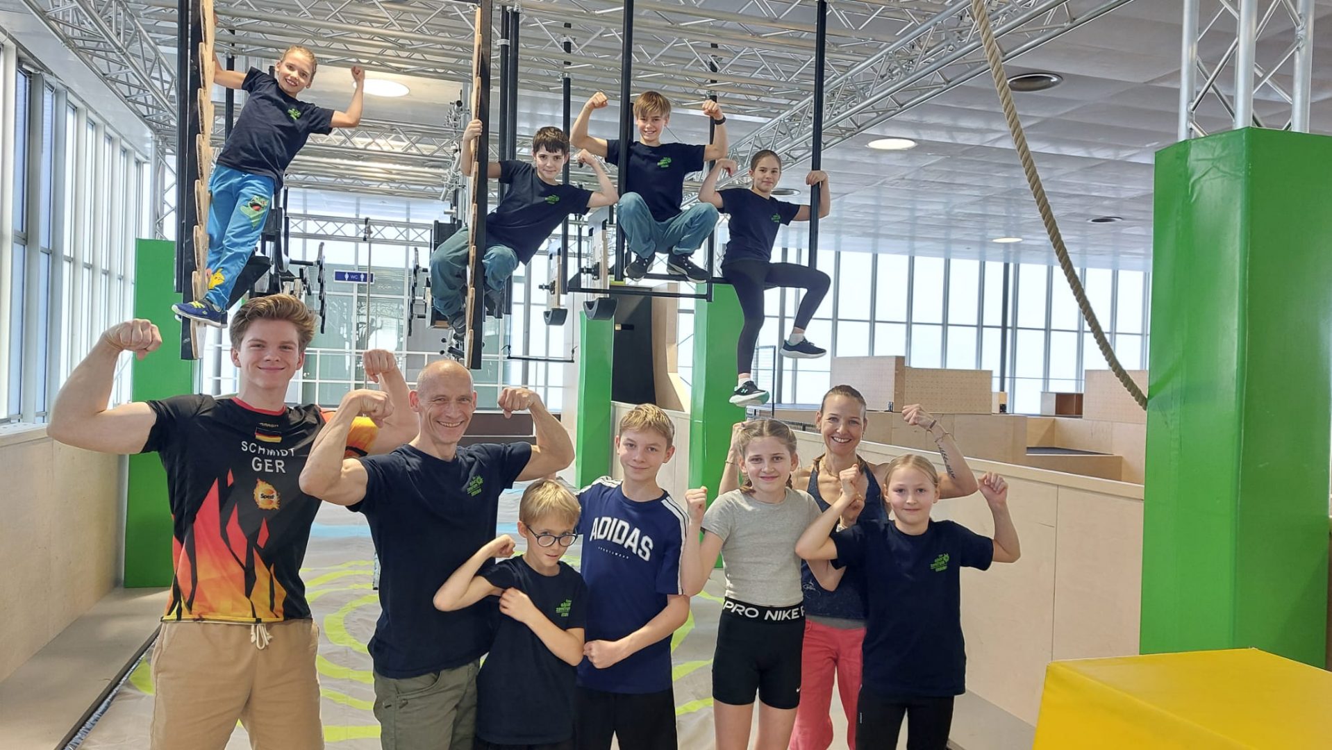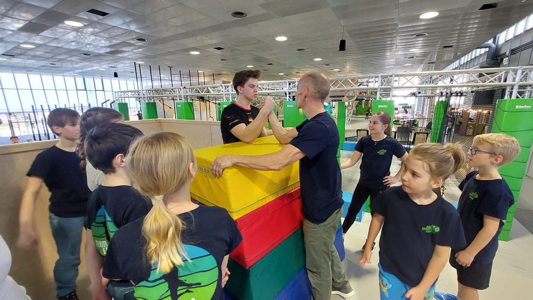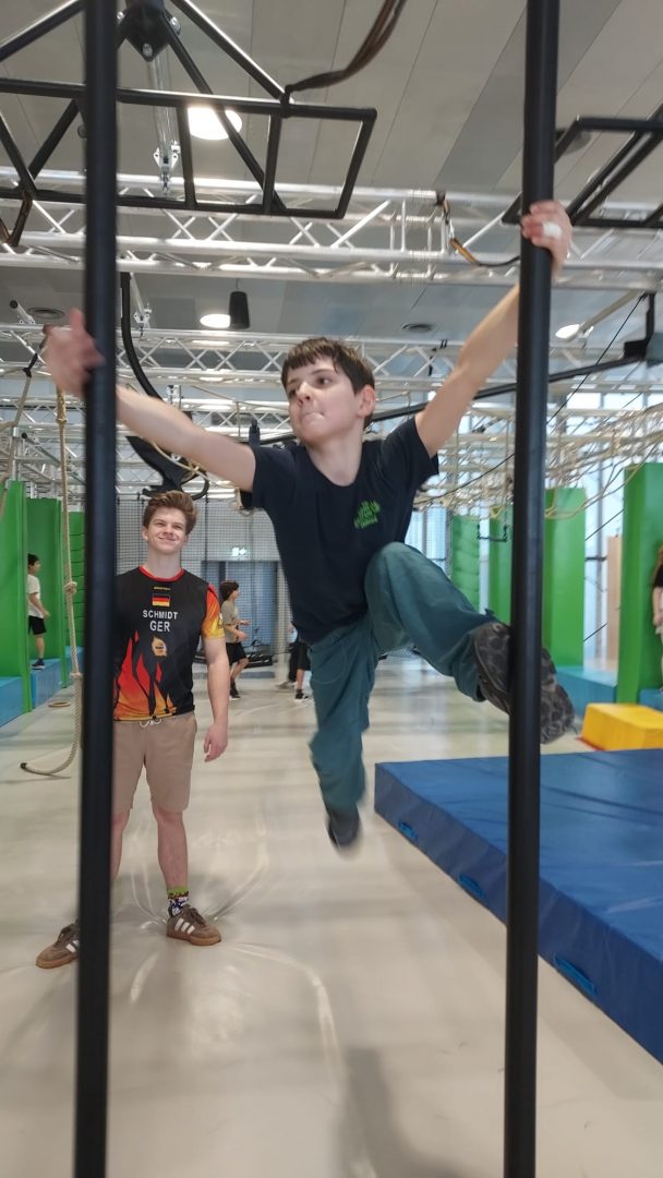 Für den Start in den Tag hatten sich die Trainer und Betreuer Nikola Wörz, Rosa Thees und Christoph Thees den Parkour-Teil der neuen Münchener Actionsport-Halle ausgesucht. Hindernisse aus Wänden und Stangen, die mit Tempo und Mut bezwungen werden. Dank der tollen Tipps einer Parkour-Trainerin vom Munich Action Park konnten die Kinder schnell auch komplexe Übungen realisieren.