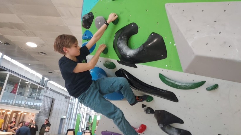 Nach Parkour und Ninja waren Trainer und Kinder schon ziemlich angezählt. Die Calisthenics-Hindernisse, an denen vor allem Klimmzugübungen gemacht werden, ließ die Erdinger Gruppe deshalb kurzerhand aus. Denn auch der Boulderbereich sollte ja noch drankommen. Nikola, Rosa und Christoph hatten sich für diesen Tagesabschluss noch verschiedene Boulder für eine Wettkampfsimulation ausgesucht, um den aktuellen Leistungsstand der Kinder zu testen. Und auch hier gaben die Erdinger Nachwuchsathleten nochmal alles. Einige Flashs in herausfordernden Bouldern und viele Versuche in harten Projekten, das alles in einer knappen Stunde – das war die Bilanz des Boulder-Parkours.