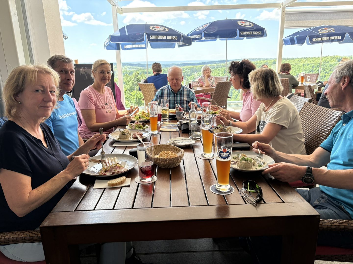 Wieder die Oberfläche erklommen wurde es zugleich sommerlich warm. Wir schritten über kleine Waldpfade, mal über Waldpfade, mal ging es zügig bergauf und genossen den Abwechslungsreichen Weg mit schönen Aussichten im gemütlichen Tempo. So genossen wir das Altmühltal mit all seiner Schönheit. In der Ritterschänke bot sich uns ein kulinarischer Hochgenuss, bei freundlicher und zugleich zügiger Bedienung. Hier kehrt es sich wirklich gerne ein.