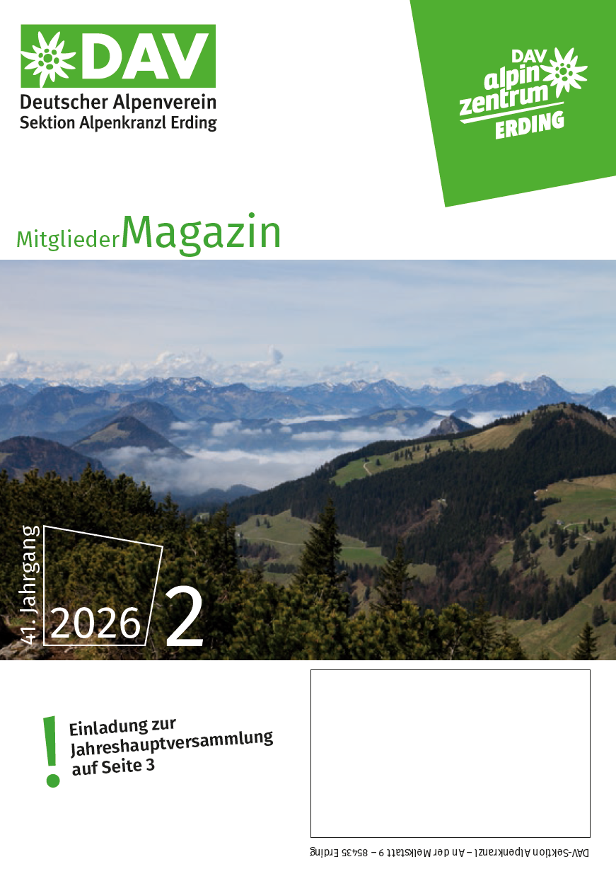 In unserem aktuellen Heft 2/2026 findet Ihr nicht nur die Programme für Kurse und Touren, sondern hier auch die Einladung zur Jahreshauptversammlung. Wir freuen uns, Euch da zu treffen!