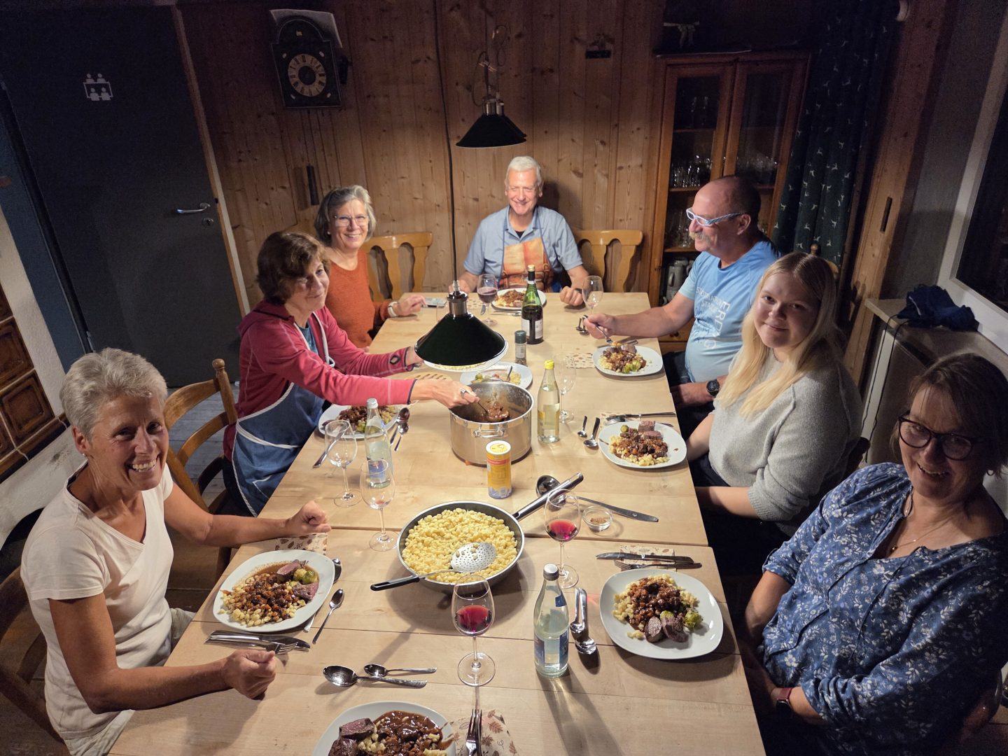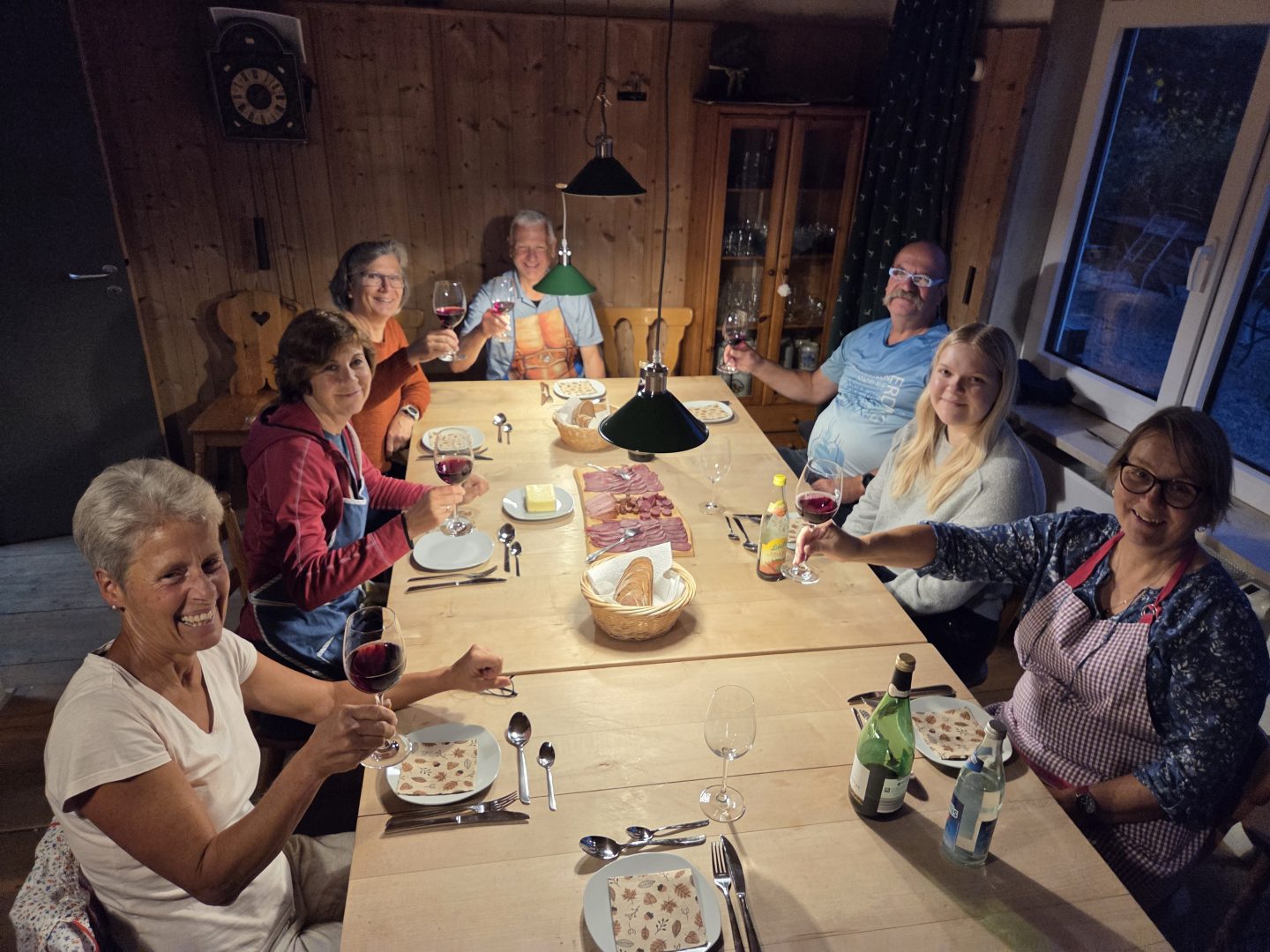 Als die Pilze hinzugefügt, der Schnellkochtopf geschlossen war und die Maronen zum Erkalten ins Freie durften, hatten wir Zeit in Ruhe die kalte Brotzeit zu genießen.