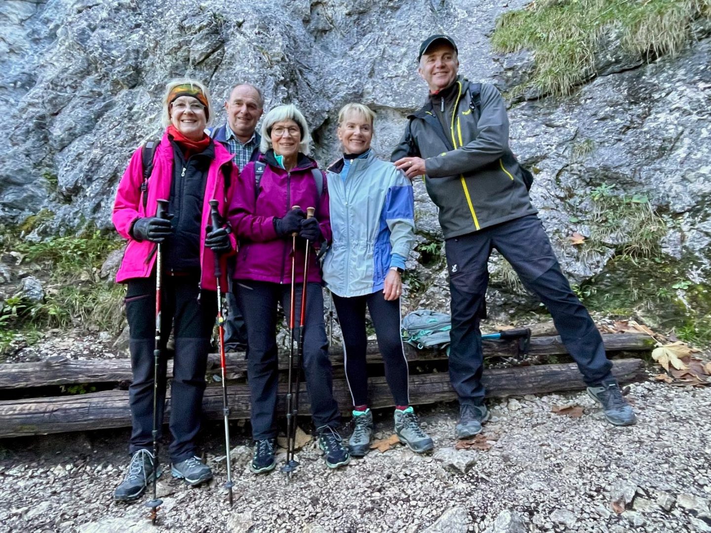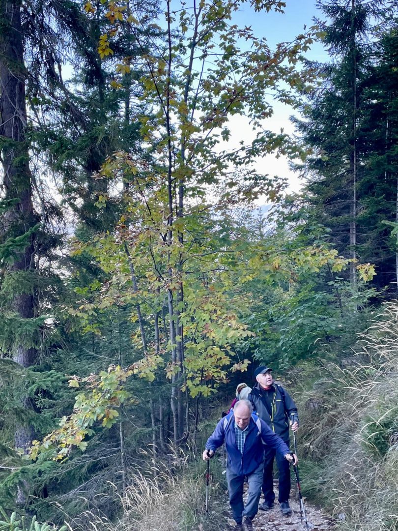 Sobald wir den Wald erreichten wurde es sehr kalt und es wurden teilweise Handschuhe angezogen. Gemütlich ging es zuerst auf der Teerstraße und bald schon auf einem sehr schönen Bergpfad weiter. Die Stimmung war gut und der Pfad schlängelte sich bis zum Felsaufschwung.
