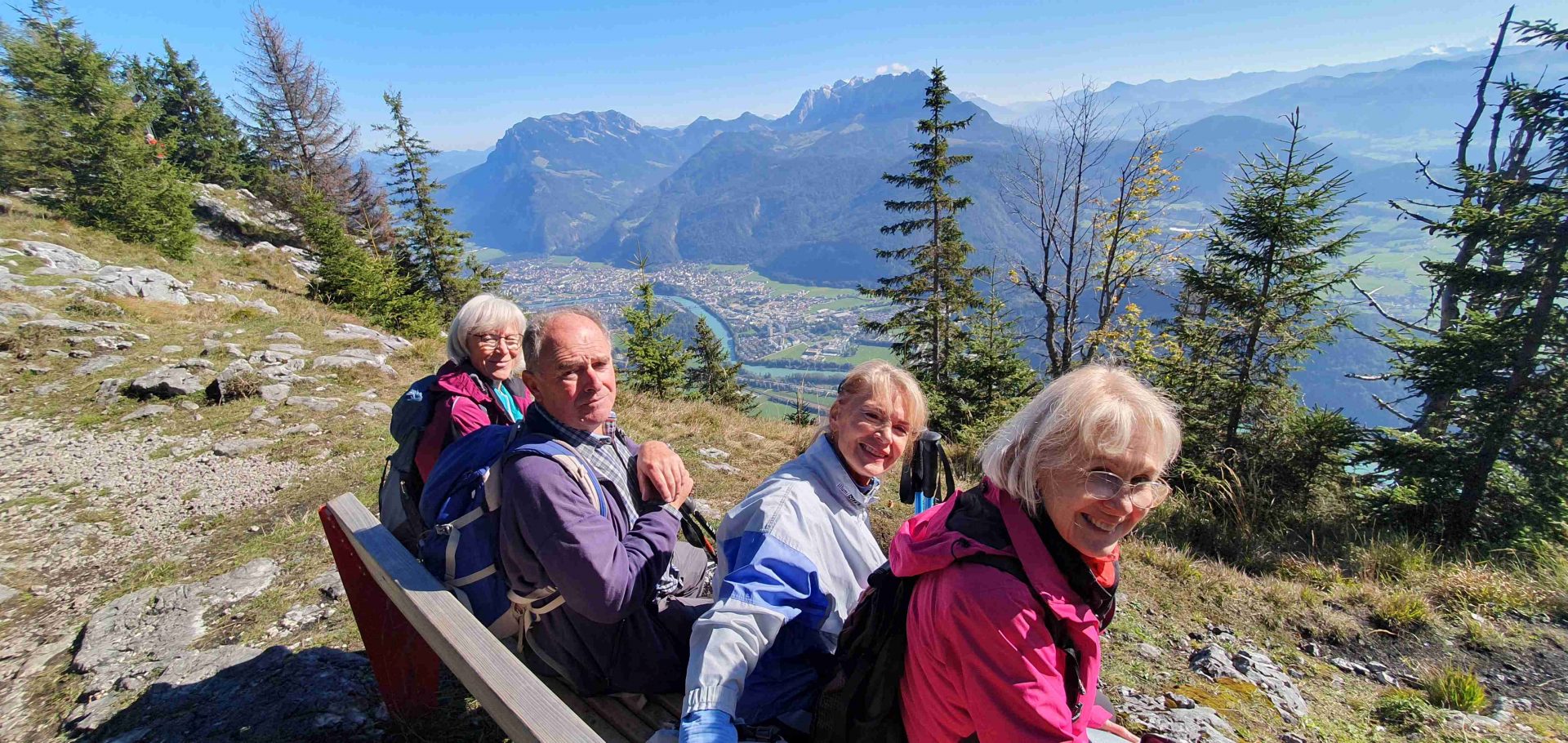 und genossen bei einer kurzen Rast in der Sonne den gigantischen Blick ins Inntal und zum Kaisergebirge.