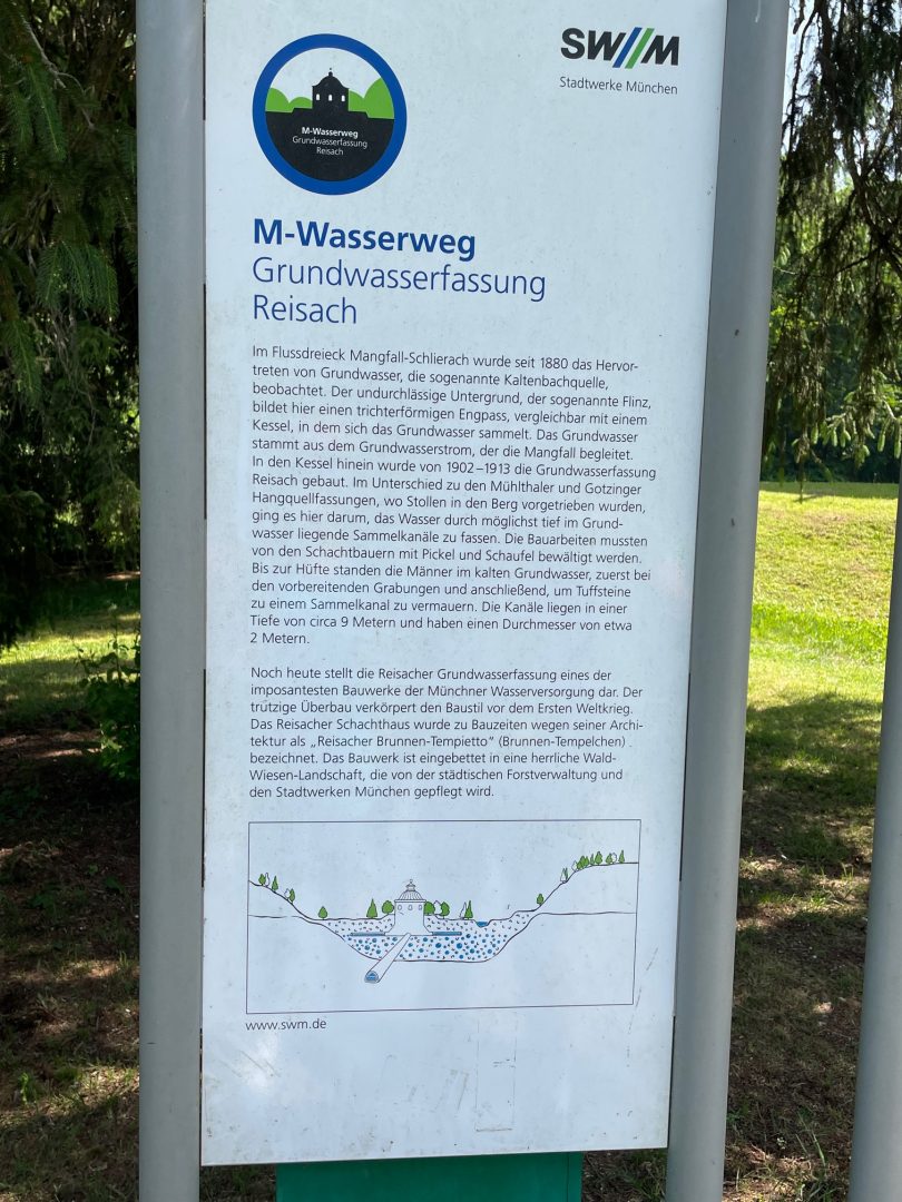 Selbst da wurde es uns nach Erquickung durch leckeres Essen und frischen Getränken zu heiß….Und wir wollten doch zu den Münchner Wasserwegen…Auf der Westseite des Sees wieder hoch nach Gmund biegen wir rechts ab und verfolgen die Mangfall und auch den Frischwasserkanal der den Münchnern den Durst stillen lässt und Hygiene erlaubt.