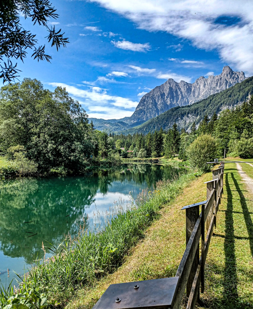 Der Weg bestand überwiegend aus schönen kleinen Waldwegen und Nebensträßchen und führte uns zuerst an die Südseite des Walchsees und dann nach Süden drehend an Schwendt vorbei nach Kirchdorf i. Tirol und Going.