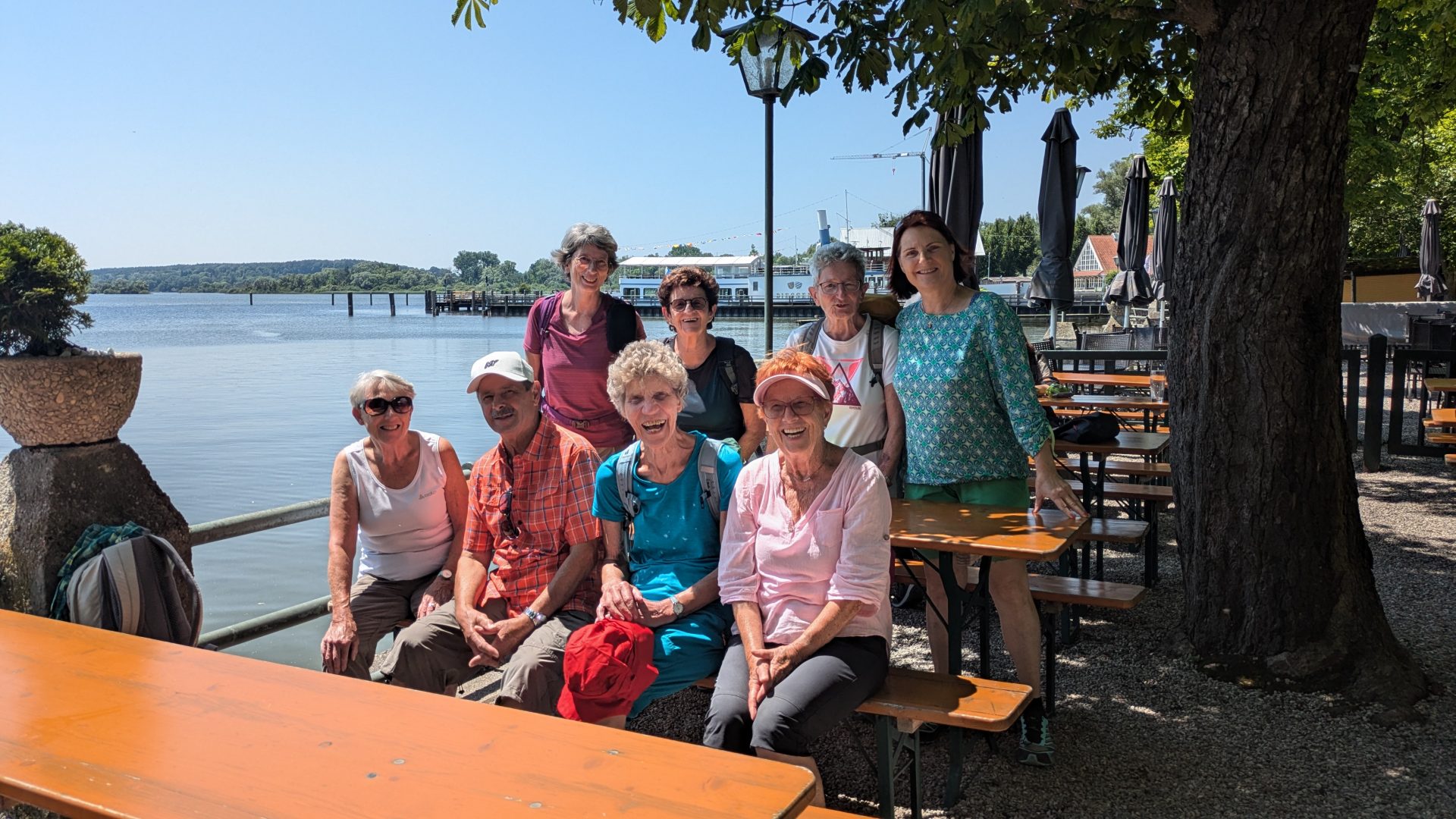 Zusammen wanderten wir durch eine wunderbare Buchenallee und einen urigen Waldabschnitt über viele Stege nach Stegen am Nordufer des Ammersees. Zwei Leute badeten bei kühlen Temperaturen im erfrischenden See, die anderen zogen eine Mahlzeit im lauschigen Biergarten vor.