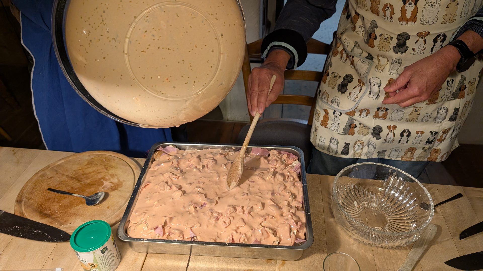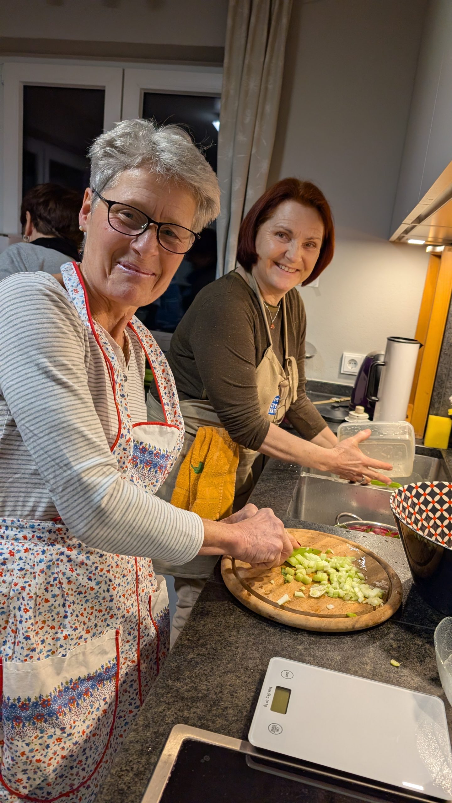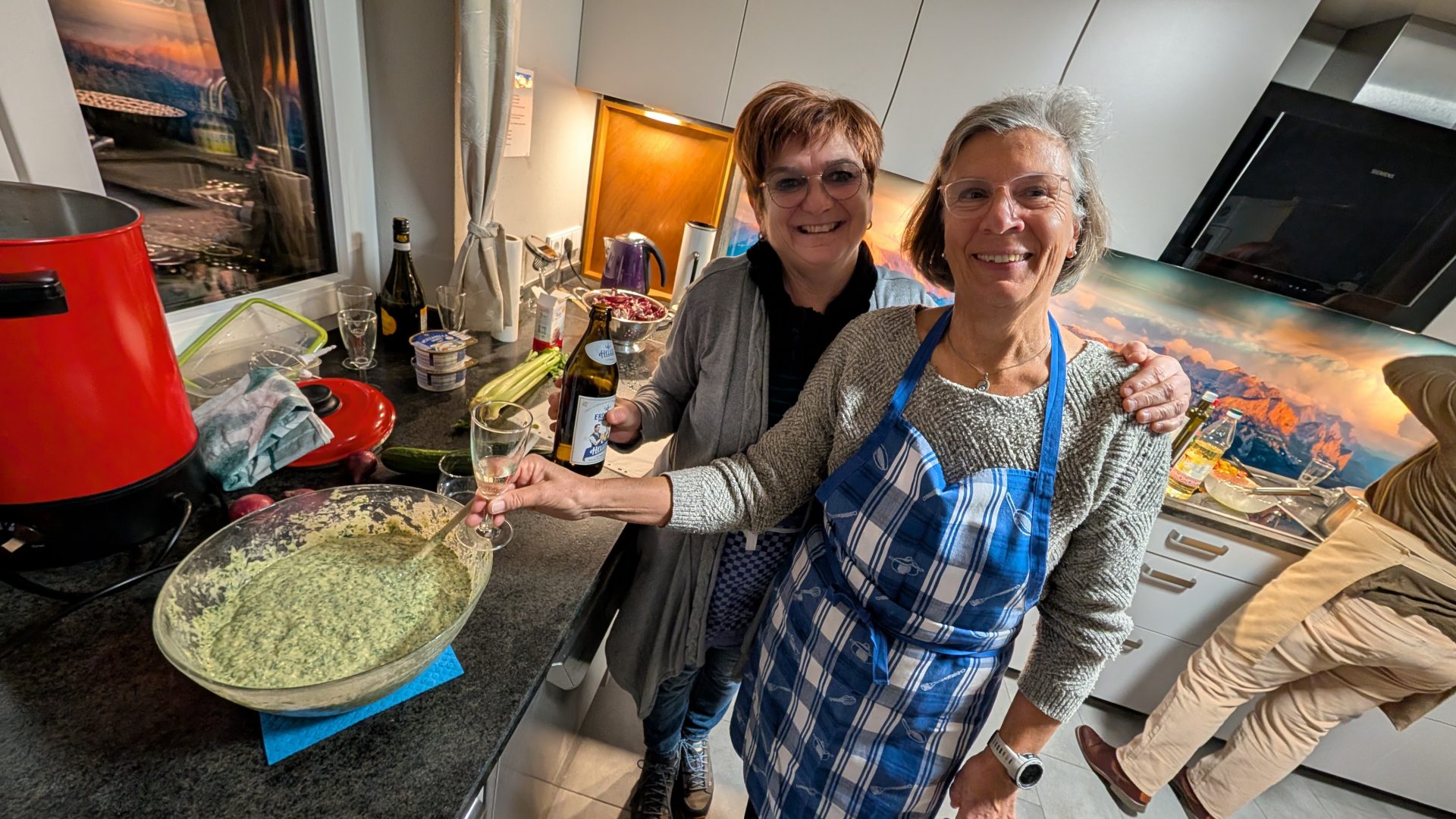 Petra und Elisabeth bereiten den Spinatspätzleteig vor